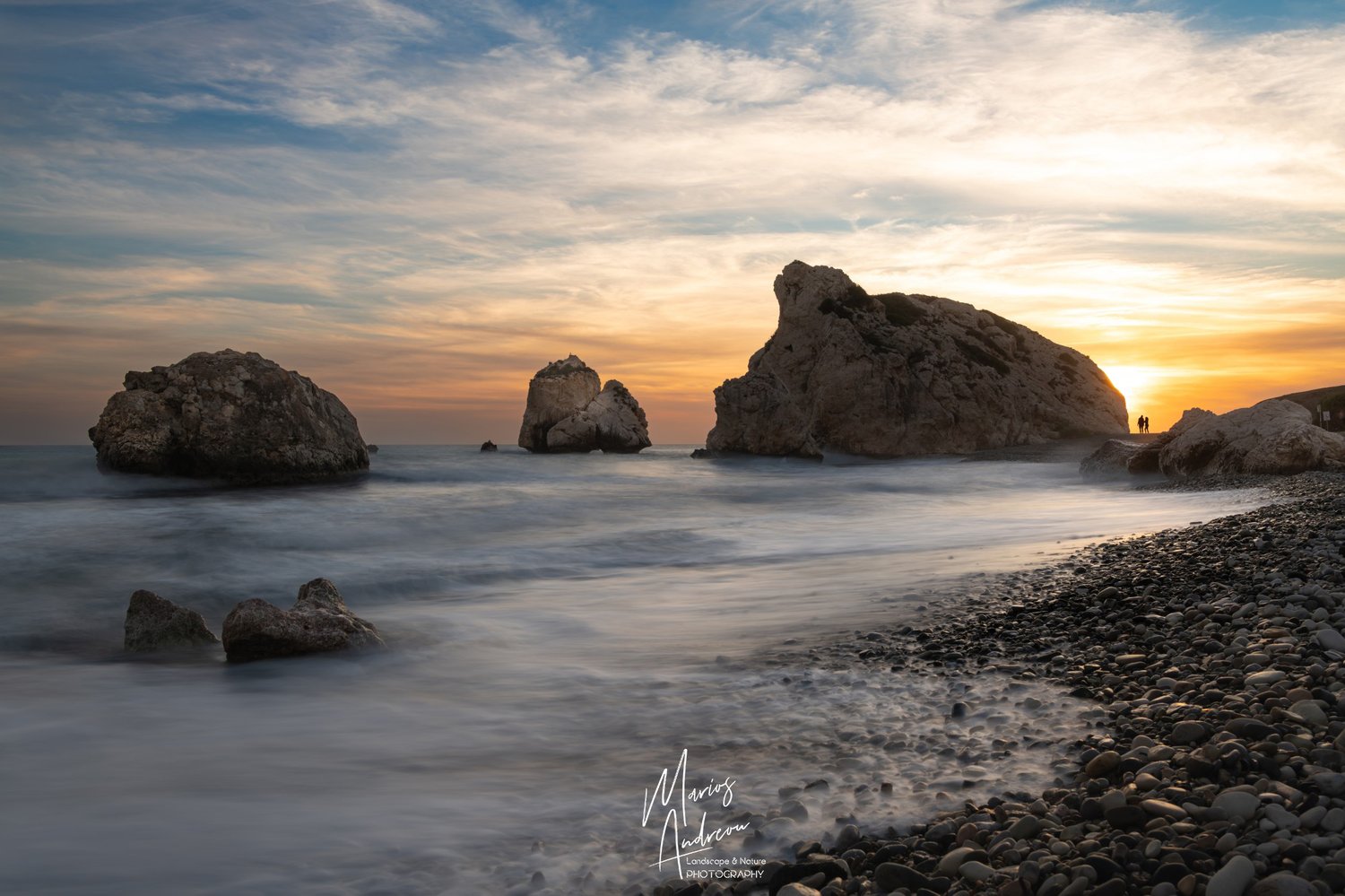 A poignant study of the Paphos coast, Here for a Moment captures a contemplative side of the legendary Aphrodite's Rock. This long-exposure photograph distills the Mediterranean surf into a low-lying mist, softly lapping against a shore of dark, sea-smoothed pebbles.