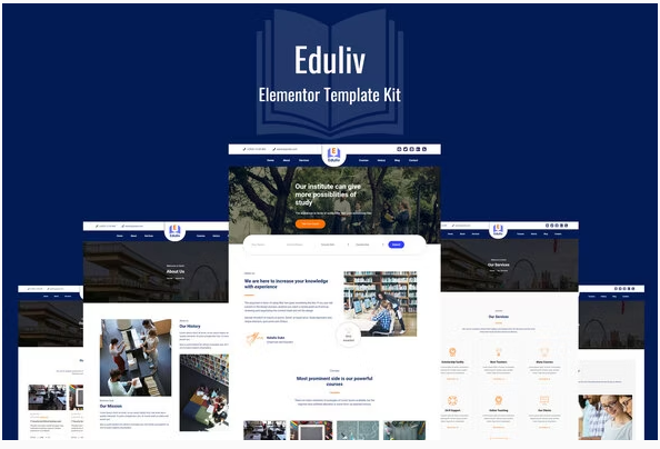 - Eduliv - Education Elementor Template Kit : Eduliv is the ultimate Elementor Template kit for Education, Schools, Courses and other similar businesses. With its beautiful design, and look that create trust, its the best fit for this Industry.