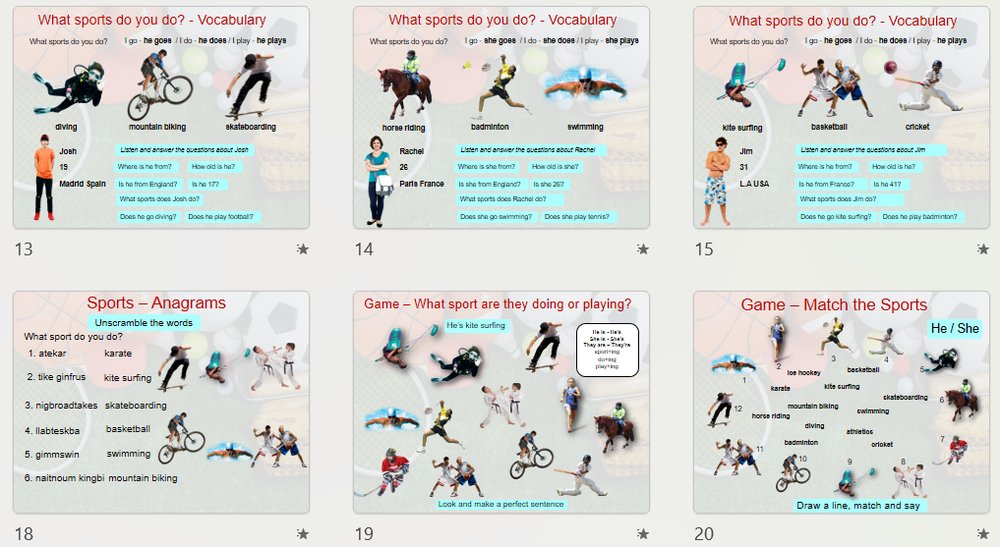 It helps learners build vocabulary and confidence around individual sports and fitness activities, with strong visual cues and plenty of structured practice using “go,” “play,” and “do” correctly.