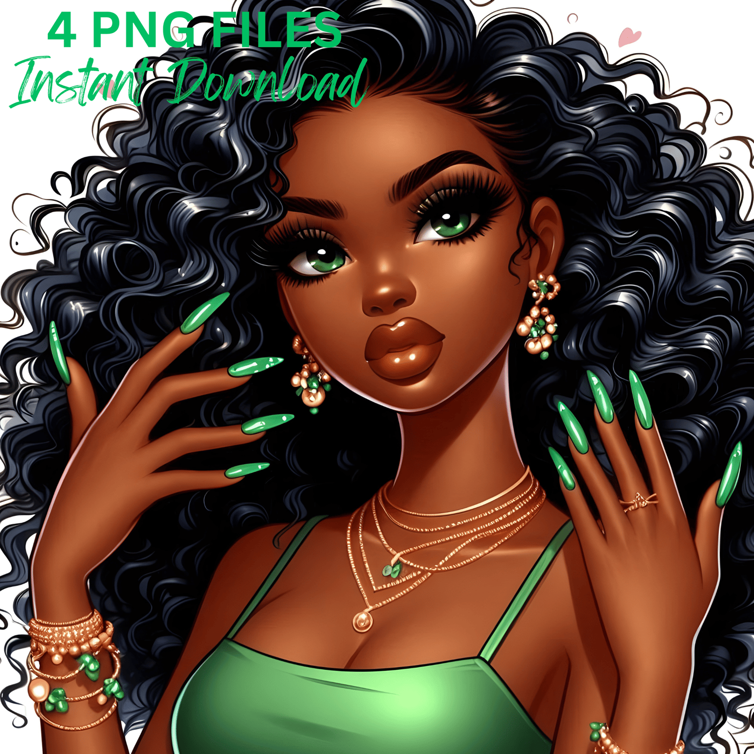 4 Beautiful Black Women Png Black Girl With Curly Hair Clipart Big Hair Curly Green Melanin Queen Black Girl Digital Download