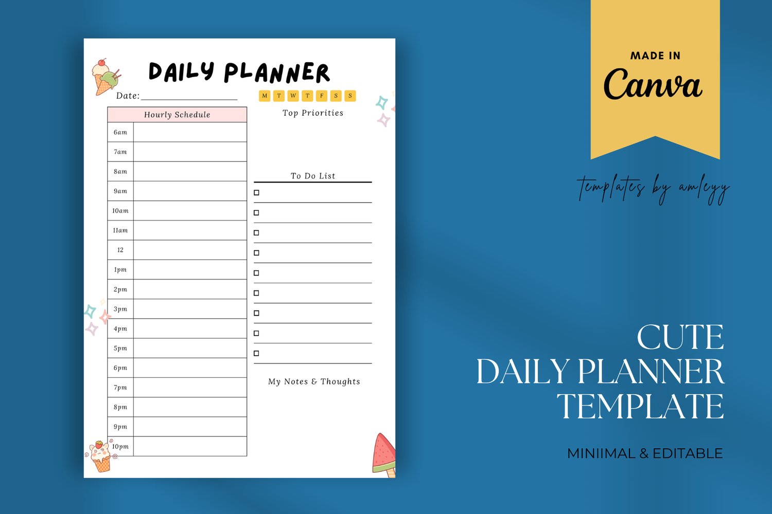 Cute Daily Planner Template – Canva Editable, Aesthetic Printable