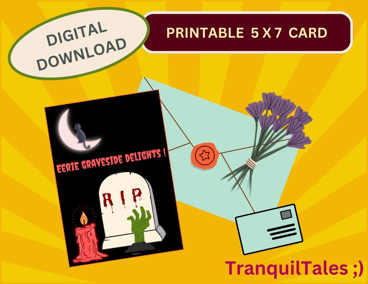 HALLOWEEN CARD - GRAVEYARD R.I.P THEME BASED GREETING CARD - FOR TEENAGERS / CHILDREN