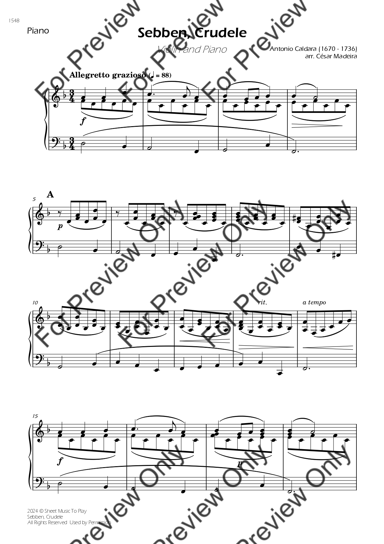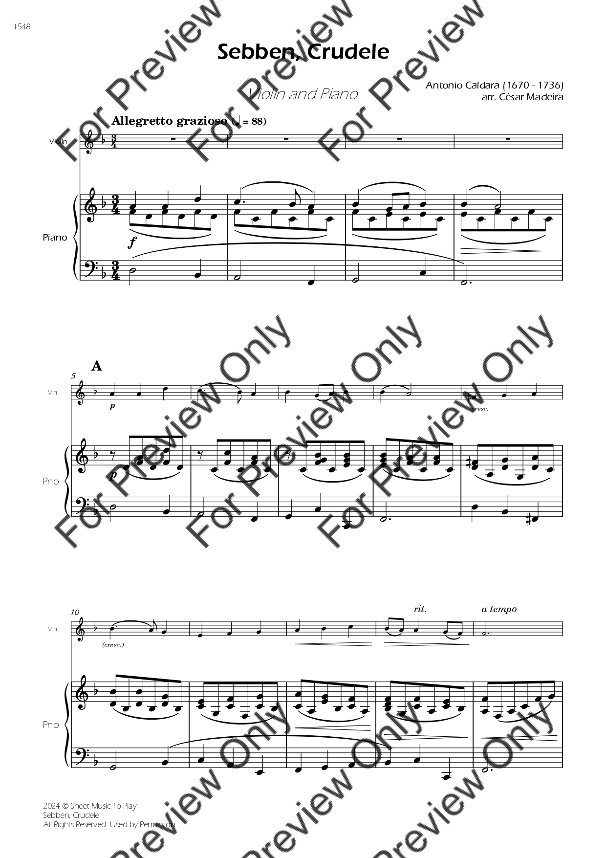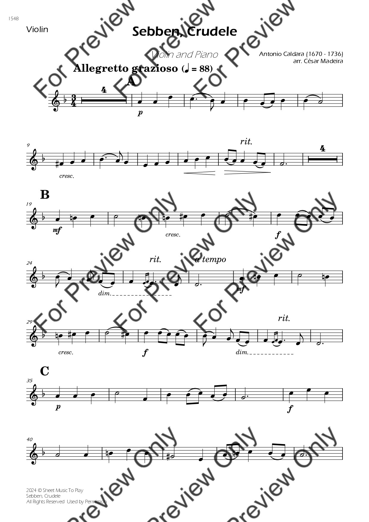 Sebben, Crudele by Antonio Caldara. Arrangement for Violin and Piano. With Full Score and Individual Parts. Have fun!