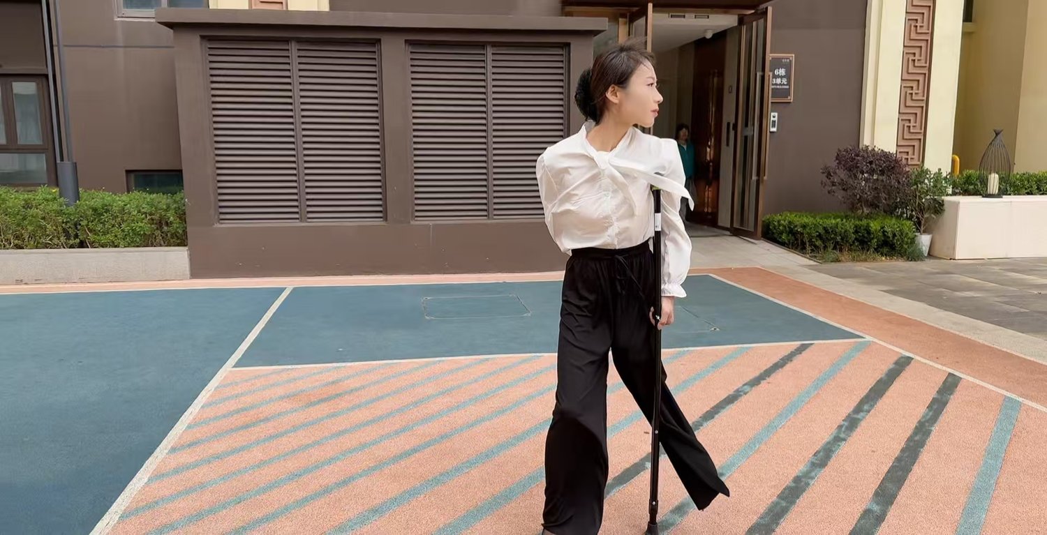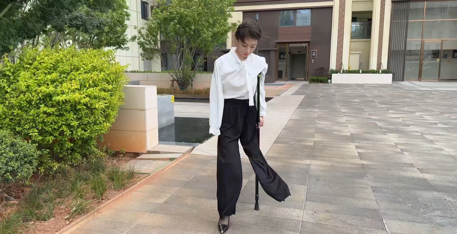 Ayla is dressed up very beautifully today, and she also pretends to be a disabled girl of OOE type.