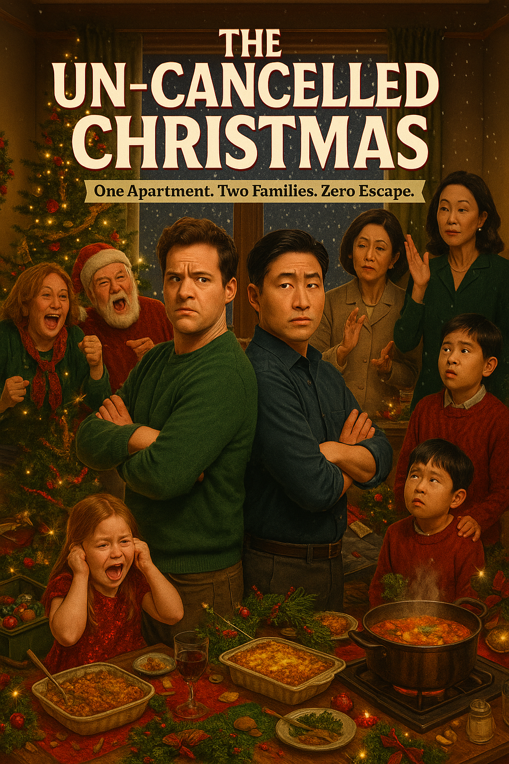 A holiday ceasefire collapses when two families weaponize love, guilt, and tradition. A confined-space collision that reframes the modern couple as a sovereign unit forced to renegotiate legacy systems under duress.