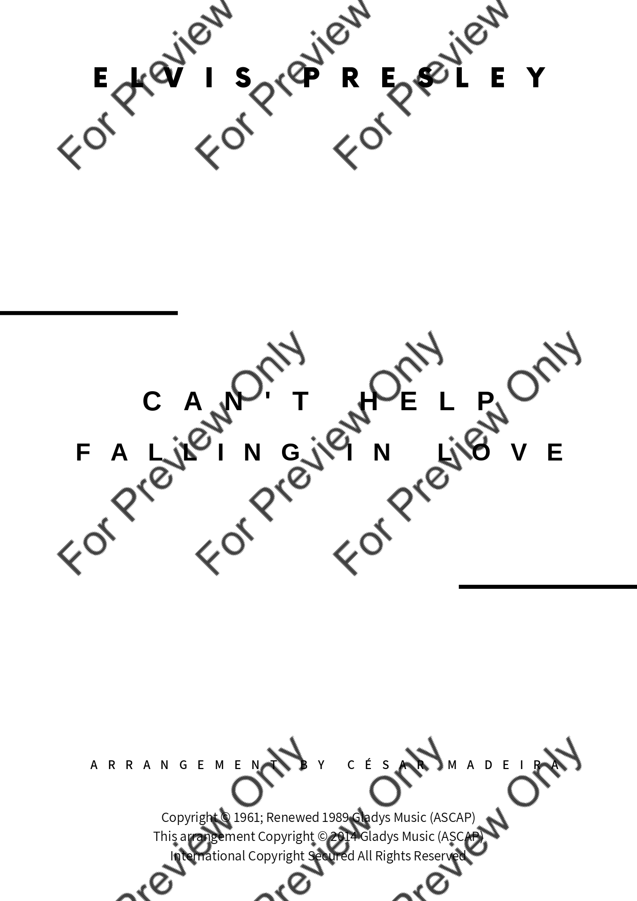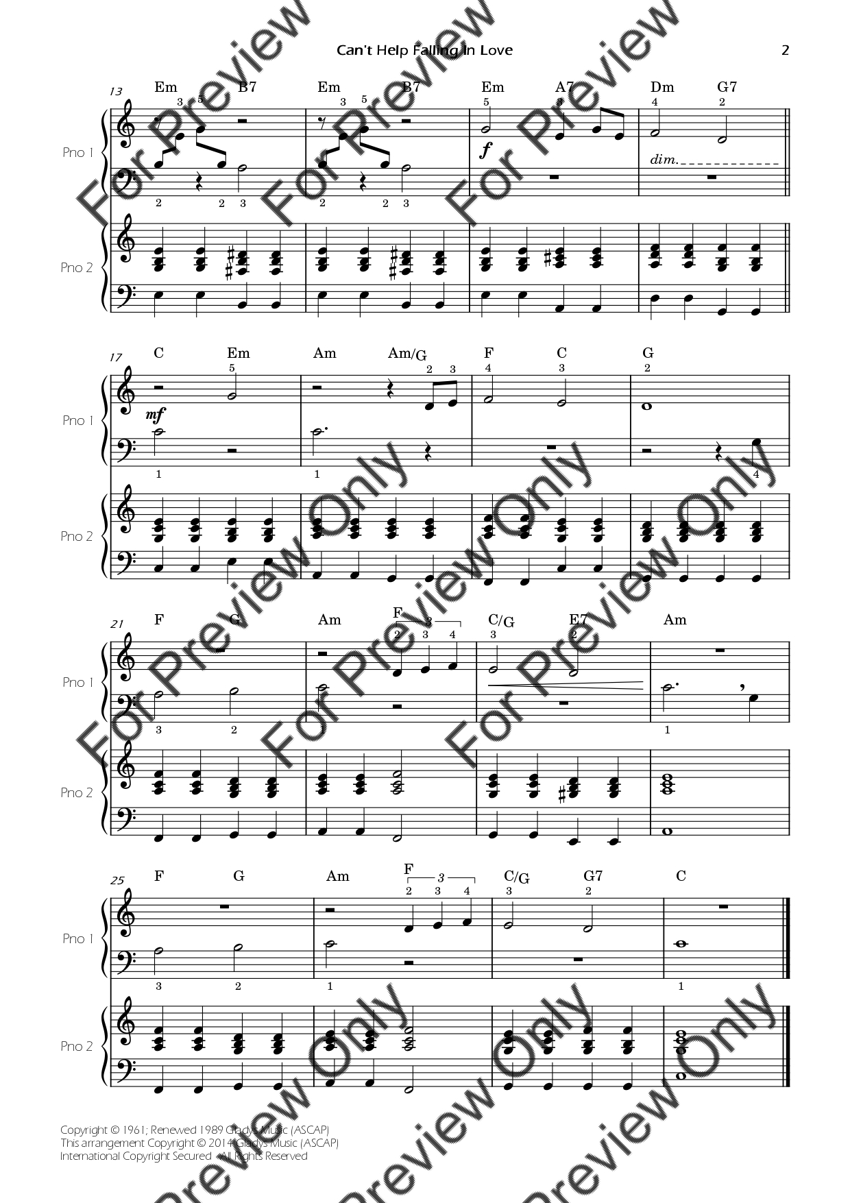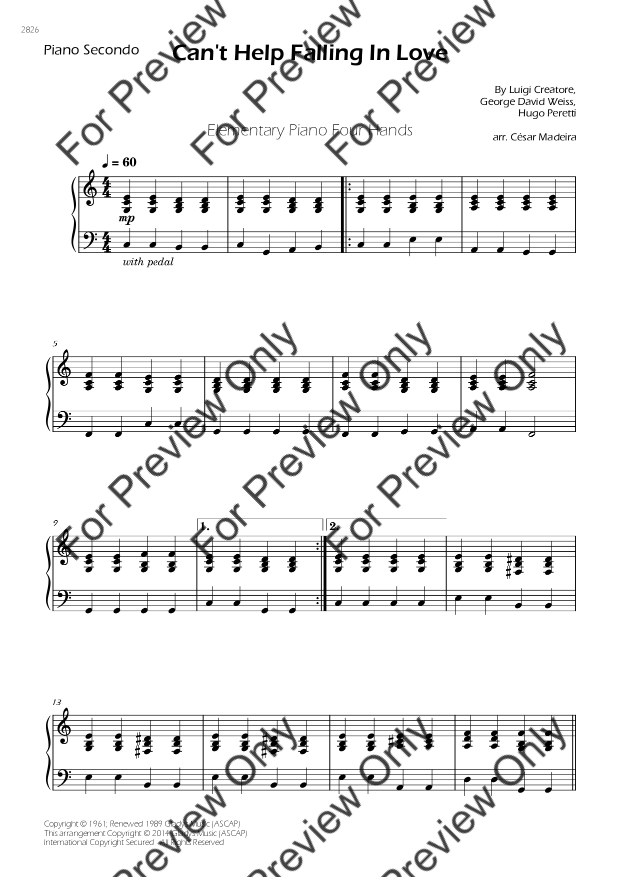 Can't Help Falling In Love by Elvis Presley. Arrangement for Elementary/Very Easy Piano Four Hands. With Full Score and Individual Parts. Have fun!