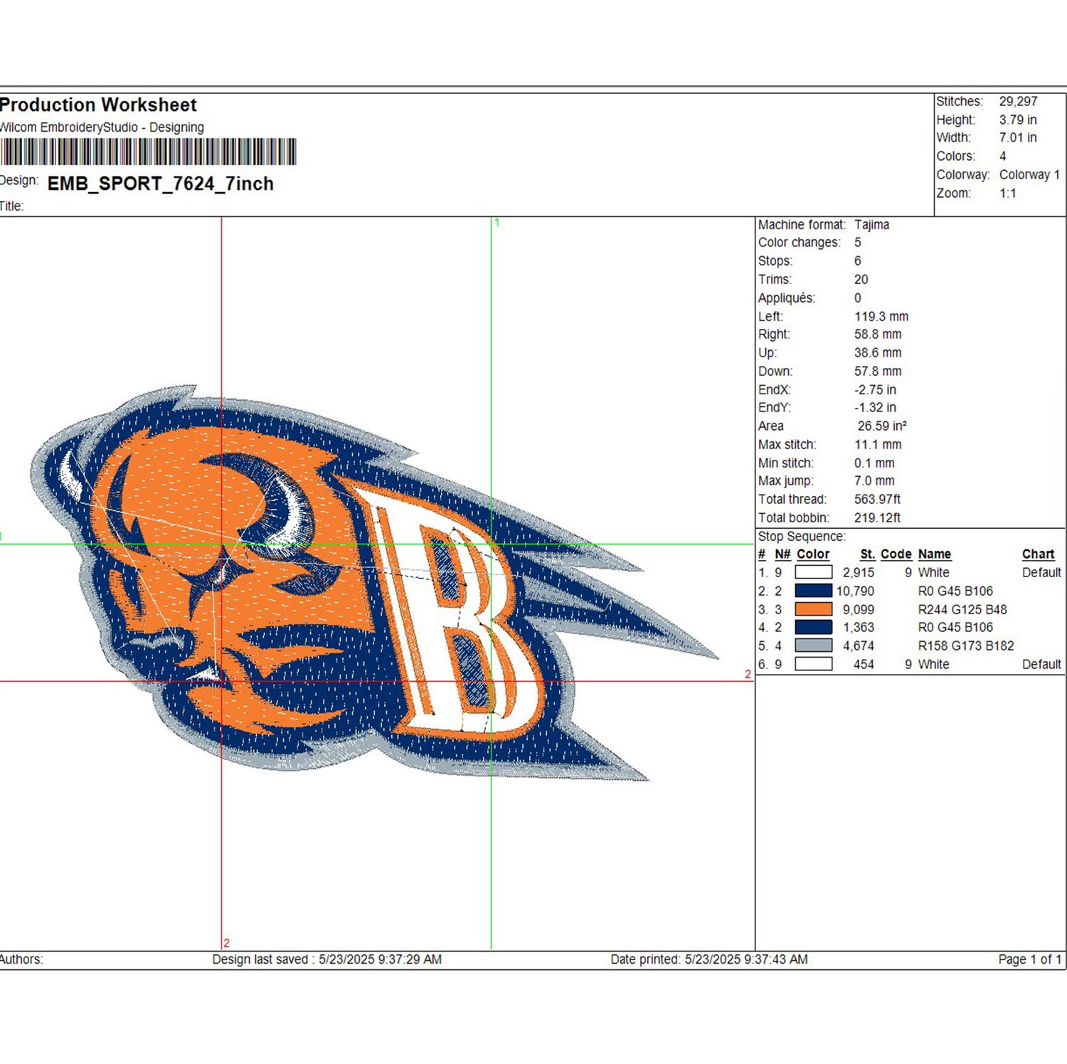 Bucknell Bison NCAA Football Team Logo Embroidery Designs, NCAA Bucknell Bison Machine Embroidery Files, NCAA Logo embroidery designs, NCAA Bison Logo, Digital Download