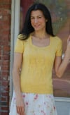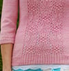 This delicate pullover, with it’s elegant central panel, is a warm weather sibling to Girl on Fire. Made with the same top-down construction, the set-in sleeves of Spring in Her Path are created simultaneously with the upper bodice (photo tutorial included). The intricate Floral Lace Panel at the center front adds elegance to the classic shape of this square-necked pullover, while the plain stockinette stitch on the back keeps things classic.