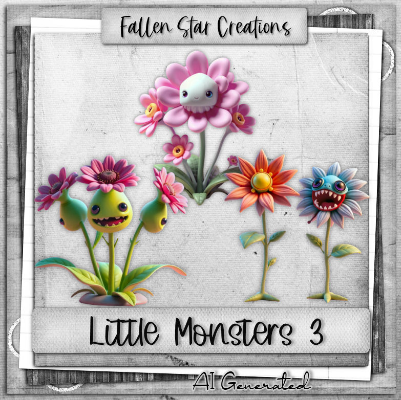 Three super cute, monster flower elements, ready to use. Larger Tagger size, sizes vary.