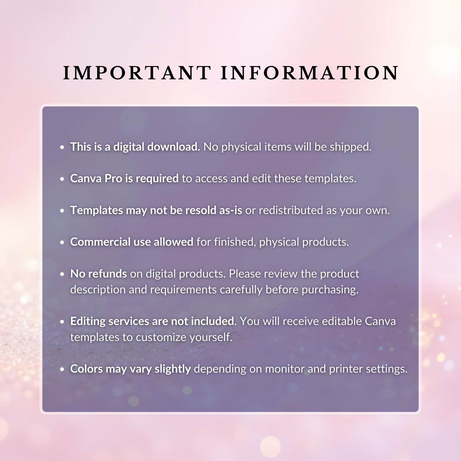 No refunds on digital products. Please review the product description and requirements carefully before purchasing.