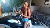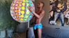 THis time he destroy one intex 36" beach ballooon and one bestway black orca.
