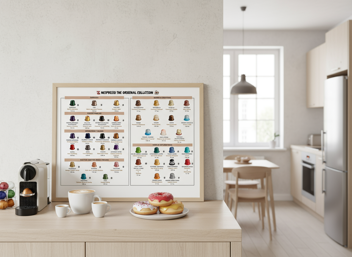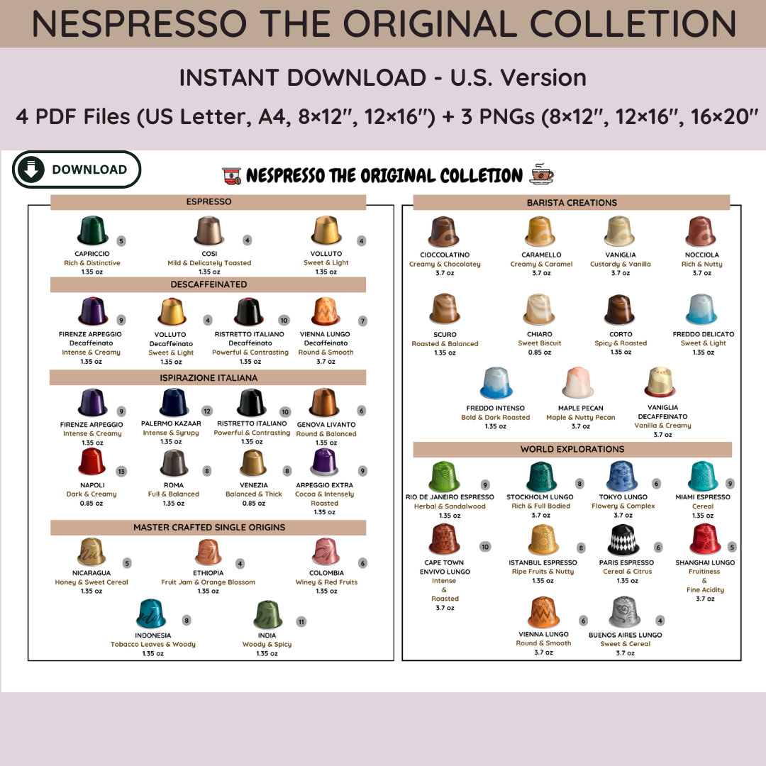 Printable Nespresso Original Capsule Guide (U.S. Version) – Intensity & Flavor Chart, Coffee Corner Decor | Updated Nov 2025