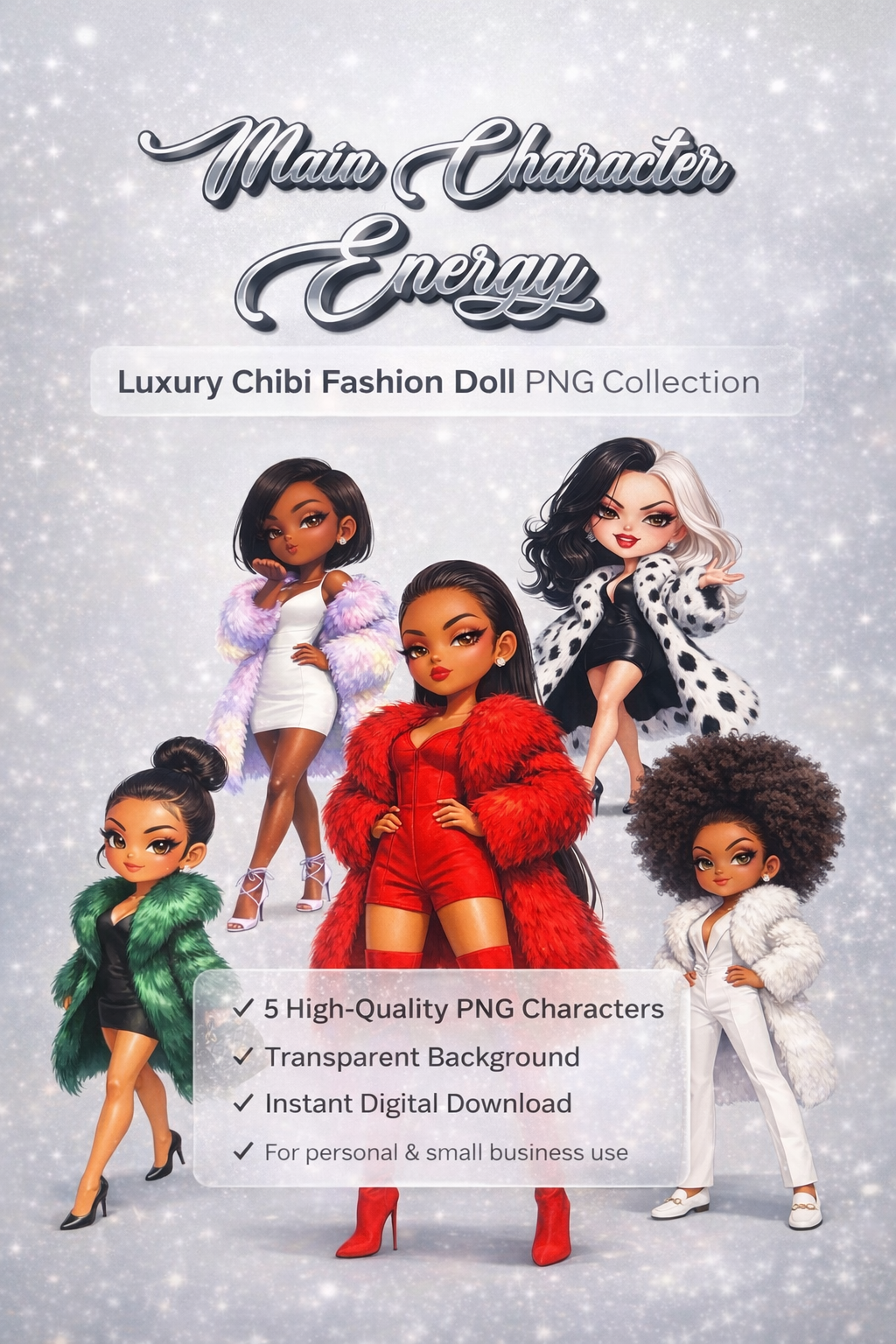 Main Character Energy-Luxury Chibi Fashion Doll PNG Bundle