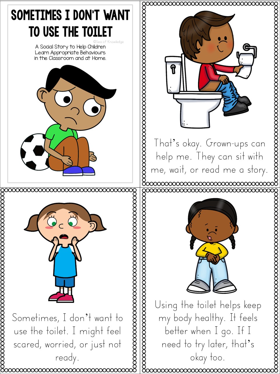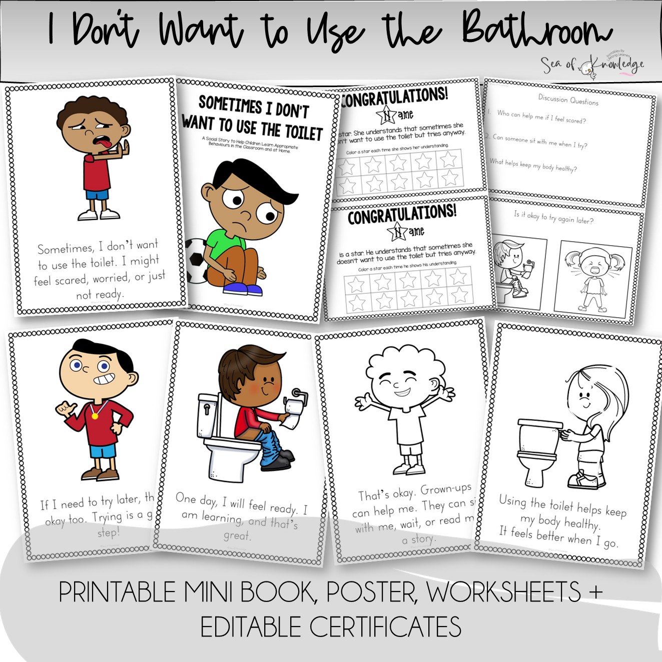 - Full-color printable social story: “Don’t Want to Use the Bathroom”