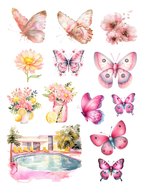 Pink Summer Ephemera to Cut and Collage PDF Printable Version