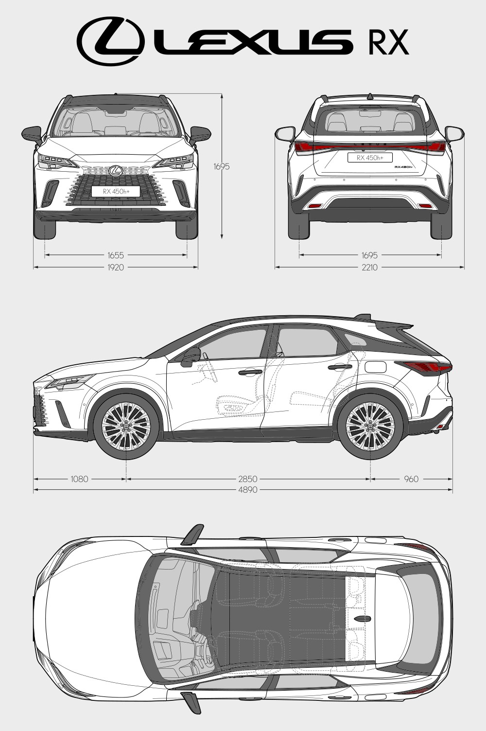 Lexus RX 2025 Car Blueprint PDF SVG Vector Drawing.