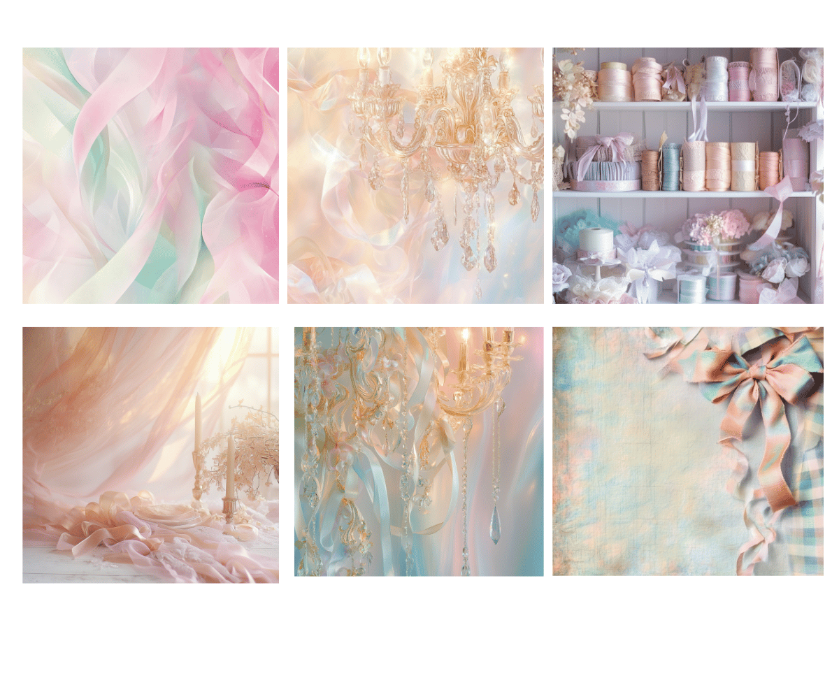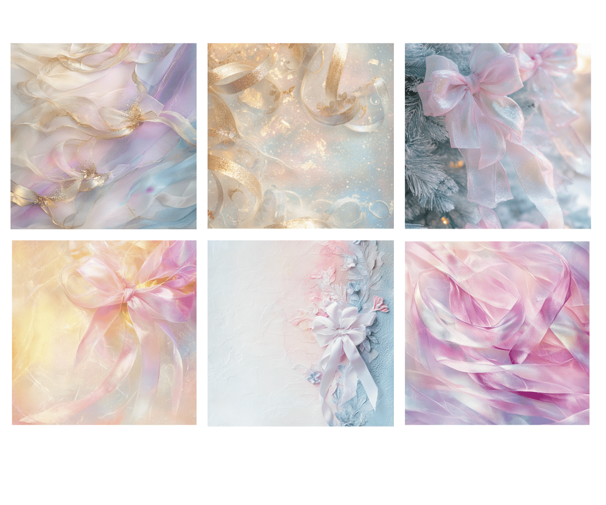 Elevate your crafting projects with our gorgeous Pastel Ribbons and Bows Digital Papers. Perfect for instant download and sublimation design. Backgrounds include elegantly styled elements suitable for crafting projects in gorgeous tones. Ideal for digital art, printable clipart, and crafting, this set is a must-have for creating charming arts and crafts designs. In fact, cut them out and place them on your planners to make for an extra special gift for an organizer. The pastel colors are luxurious and glowing and feature golden, pink, green, blue, silver and white tones with chandeliers, candles, Christmas trees, borders and sewing rooms.
