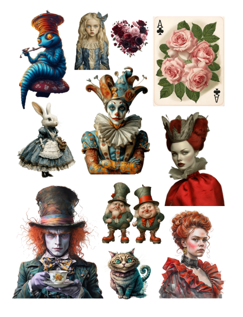Alice a Wonderland to Cut and Collage Ephemera EXTENDED Version PDF Printable