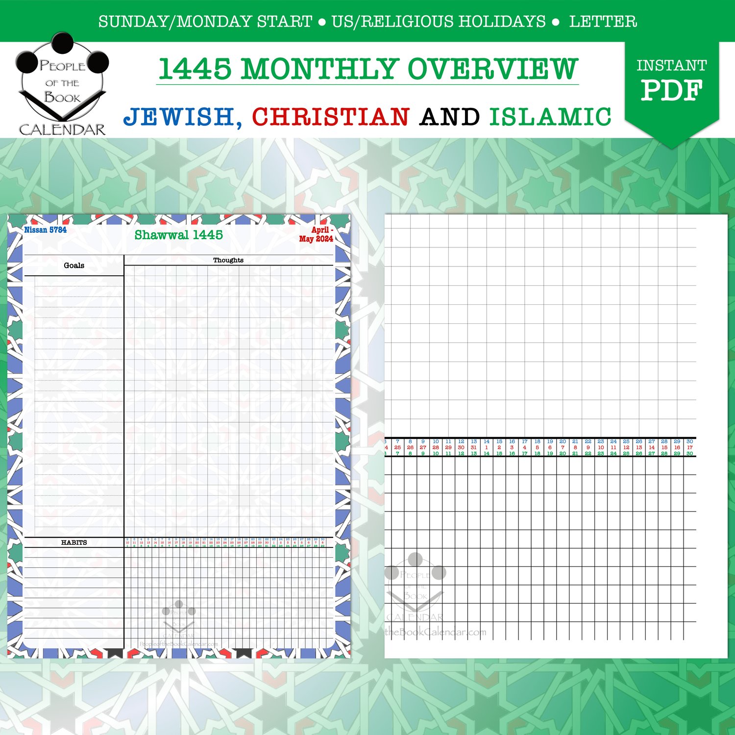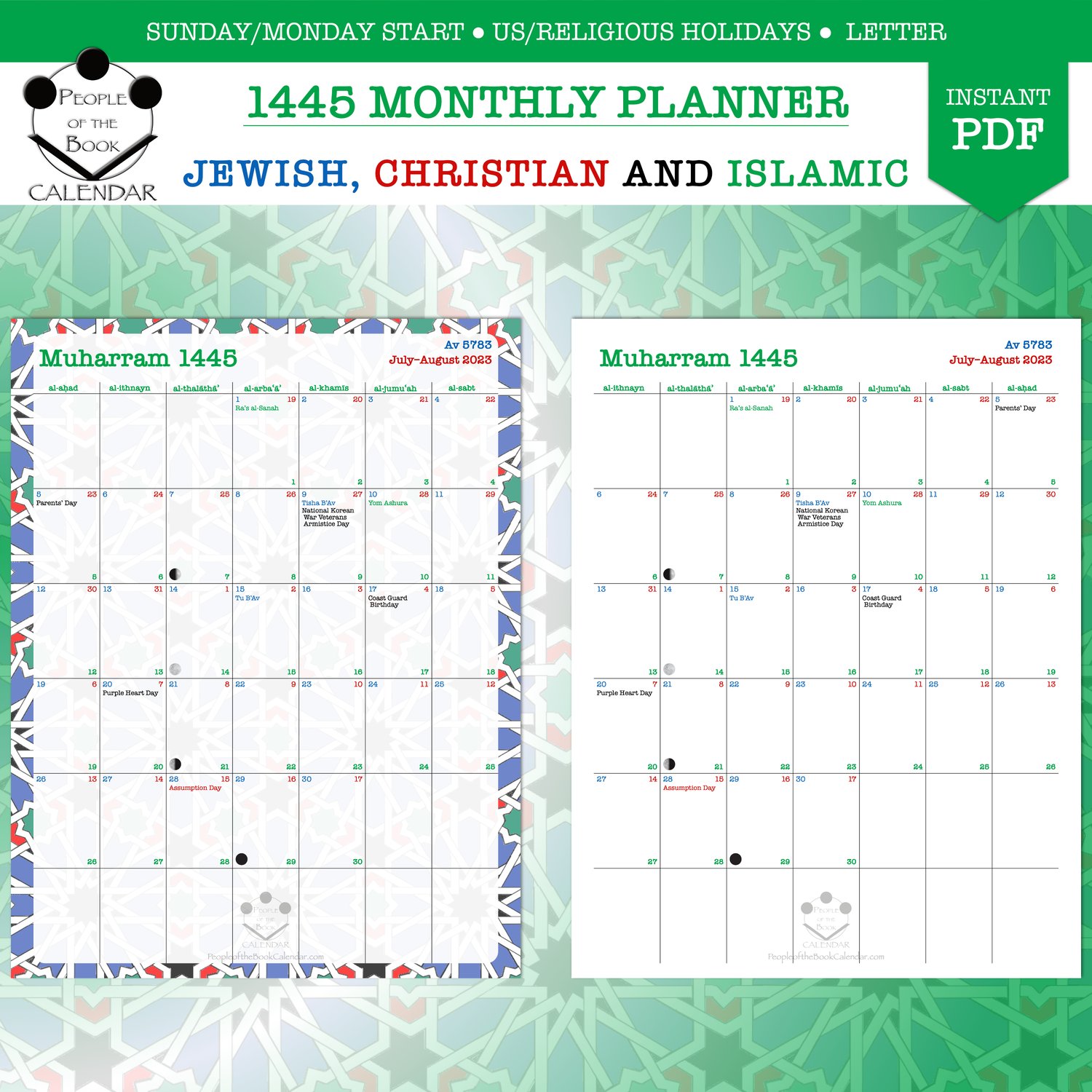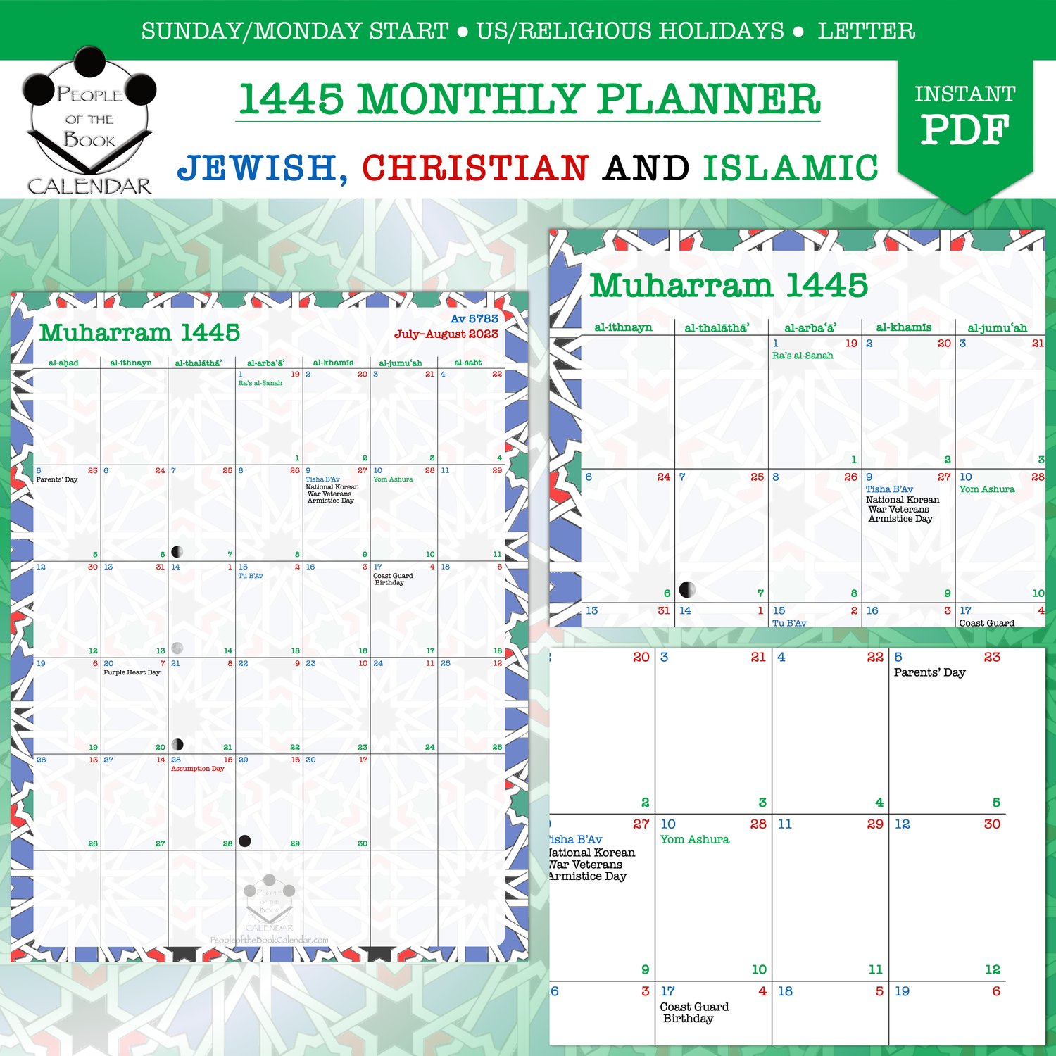 Jewish, Christian and Islamic calendars combined into one. I call it the People of the Book Calendar, referring to the "people of scripture", specifically that of the three Abrahamic monotheistic religions.