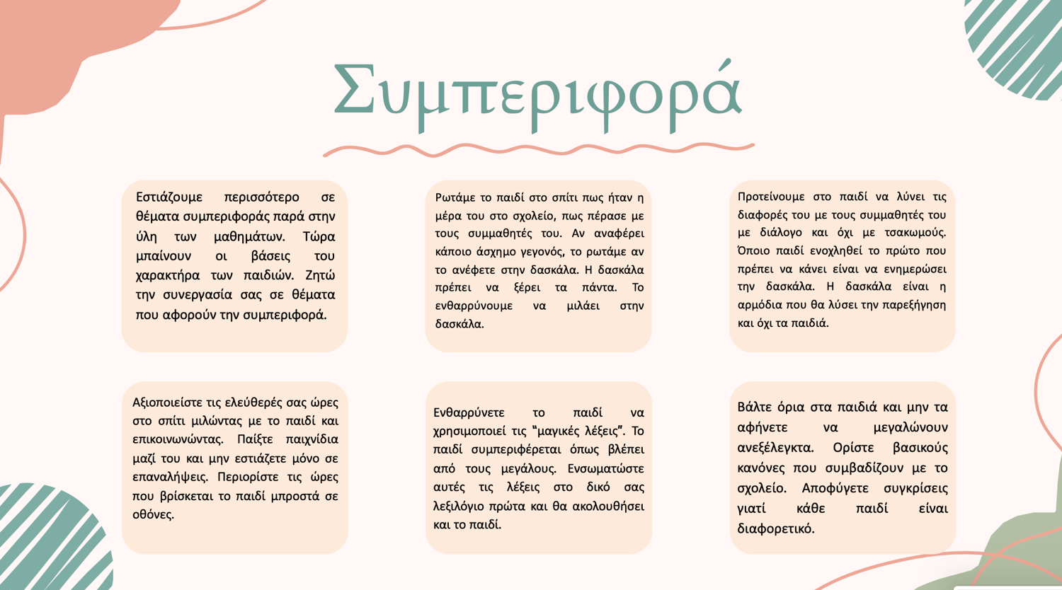 - Δημιουργία ενός υποστηρικτικού περιβάλλοντος για τους μαθητές.