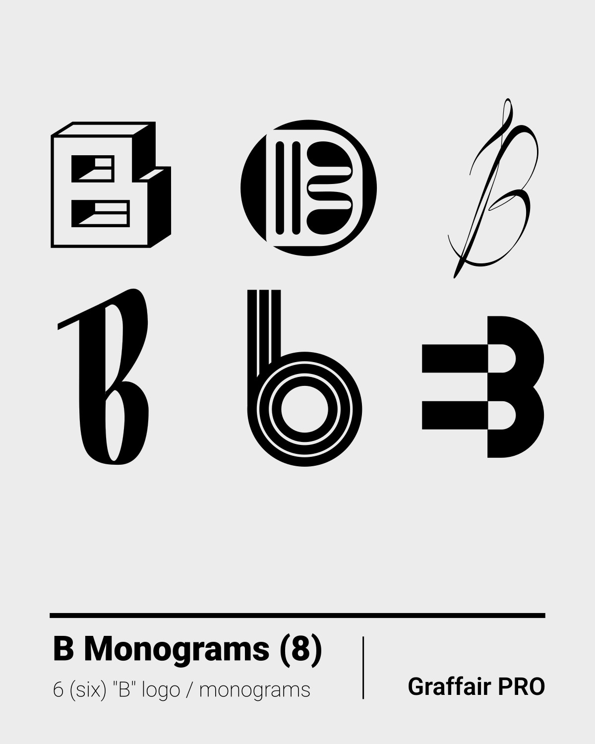 B Monograms (8): The eighth set of 6 (six) B's logo monograms, out of 55 ones, that you can find amongst the "1050 SVG Monograms" super package, which comes with an Index catalog.