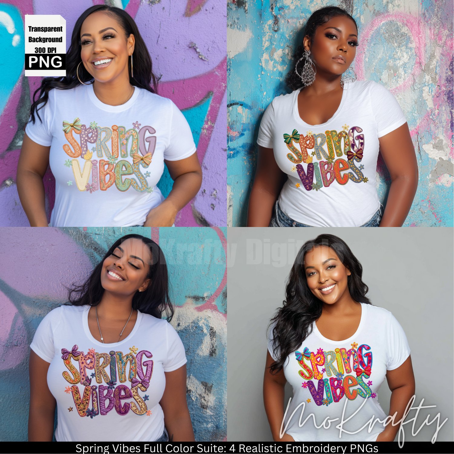 The Ultimate Spring Printing Suite from MoKrafty Digitals. Stop selling flat designs and start selling texture. This 4-design bundle captures the 2026 "Tactile Trend," giving you a realistic embroidery stitch effect in four distinct color palettes.