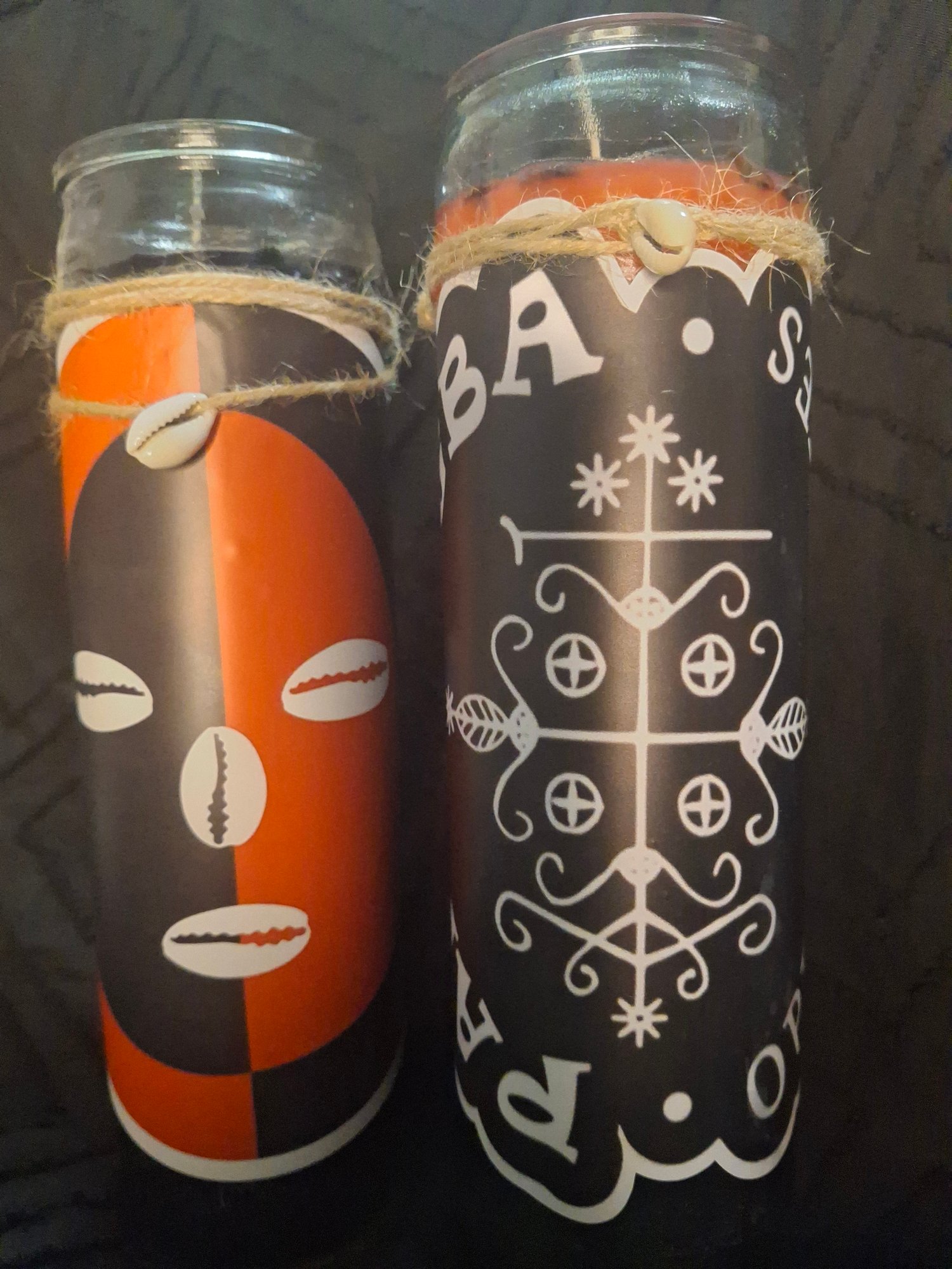 Papa Legba Ritual Candle - Prepared & Charged This 7-day novena candle has been specially prepared for workings with Papa Legba, the opener of the ways. Each candle is: