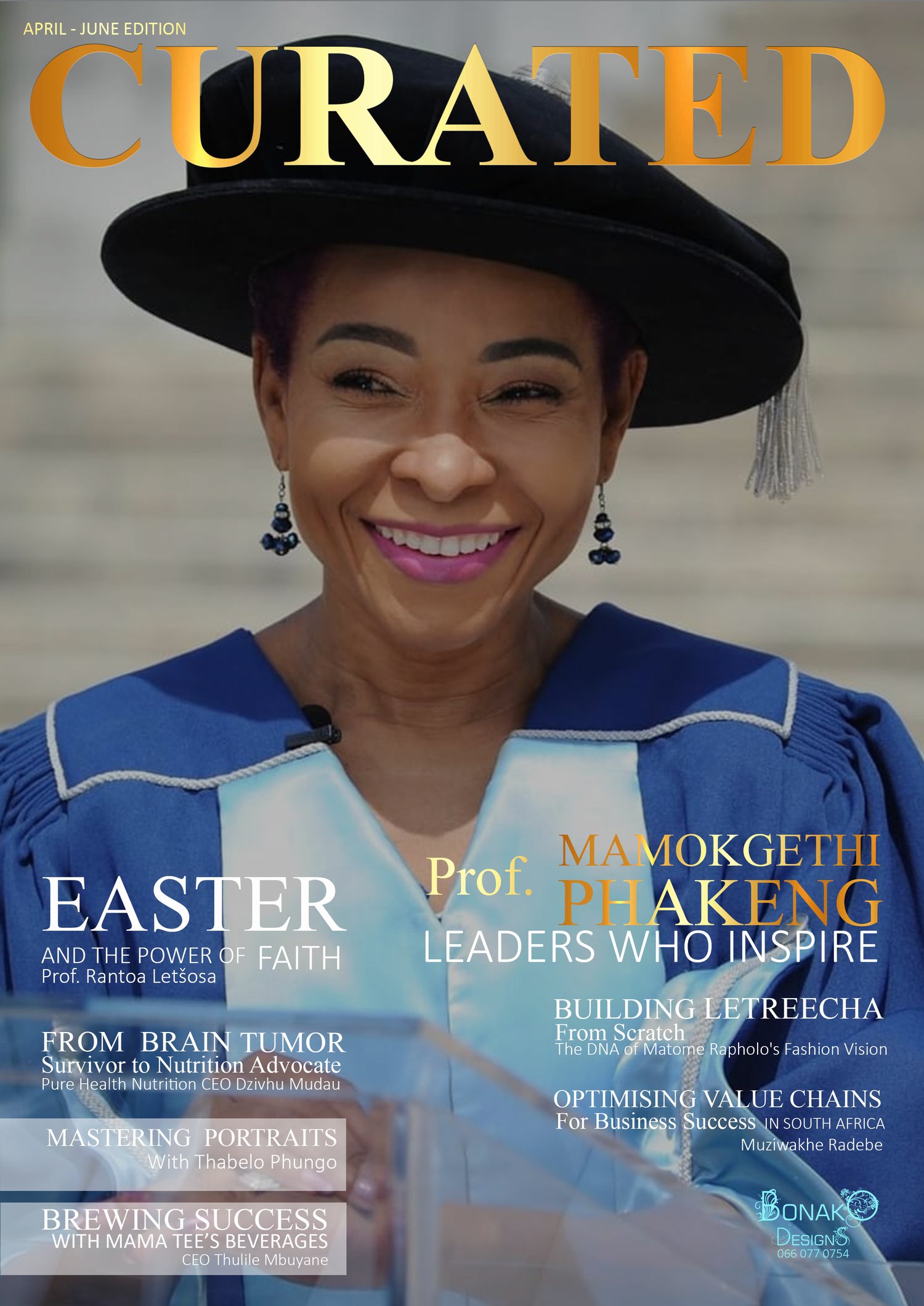 In this edition, we present thought-provoking insights from prominent figures who share their reflections on leadership, faith, and personal journeys. Professor Mamokgethi Phakeng, former Vice-Chancellor of the University of Cape Town, offers a compelling perspective on leaders who inspire and uplift others. Professor Rantoa Letšosa, Dean of the Faculty of Theology and Religion at the University of Pretoria and Chair of the Board of Directors of the Bible Society of South Africa, delivers a heartfelt message on Easter and the transformative power of faith. UNISA SBL Lecturer Muziwakhe Radebe provides valuable insights into optimising value chains for South African businesses. Psychologist and counsellor Vusumusi Radebe delves into the concept of "the man as a provider," while cancer survivor and author Lebogang Manoko shares his personal journey in The Pen, the Pain, and the Purpose. This issue also highlights notable figures such as fashion innovator Matome Rapholo from Letreecha, brain tumour survivor and Dietitian Dzivhu from Pure Health Nutrition, beverage entrepreneur Thulile Mbuyane from Mama Tee’s Gemere, and pencil portrait artist Thabelo Phungo. We proudly celebrate South African products such as JT35, a body odour elimination brand, and RenaisseLuxe luxury perfumes, crafted by Riaquat Ree Mohamed. Also featured are Mpho Mogodiri, founder and CEO of Indigenous Delights, known for her organic jam, marula nut butter, and wholesome snacks; and Geley, a passionate young social worker uplifting her community through extra classes and vibrant mural activities. This edition is a tribute to courage, creativity, and the relentless pursuit of dreams.
