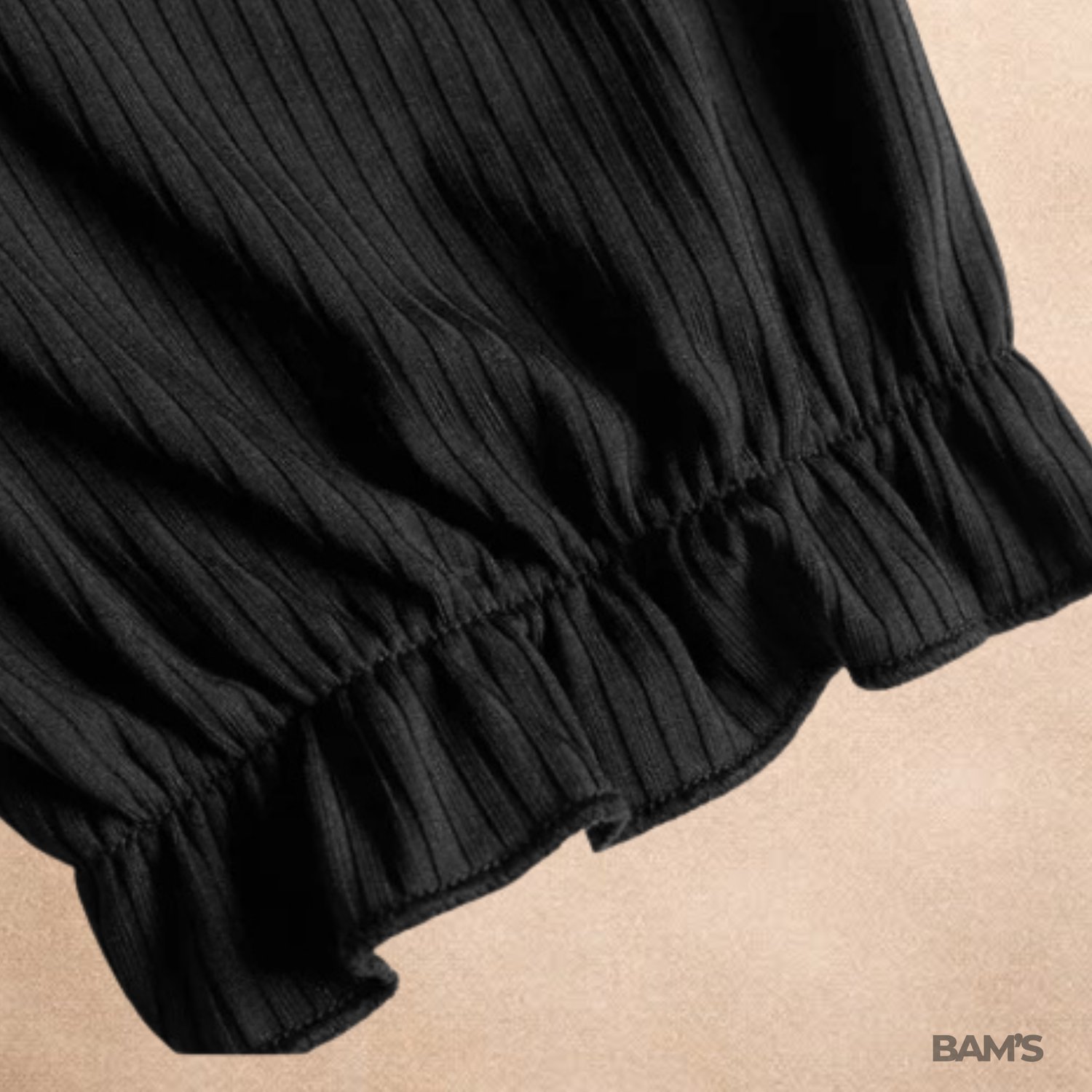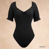 YOZY Black Ribbed Puff Sleeve Bodysuit
