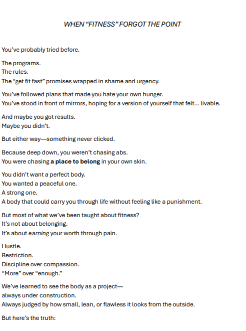 For decades, we’ve been taught that discipline means denial, that strength requires suffering, and that beauty demands control.