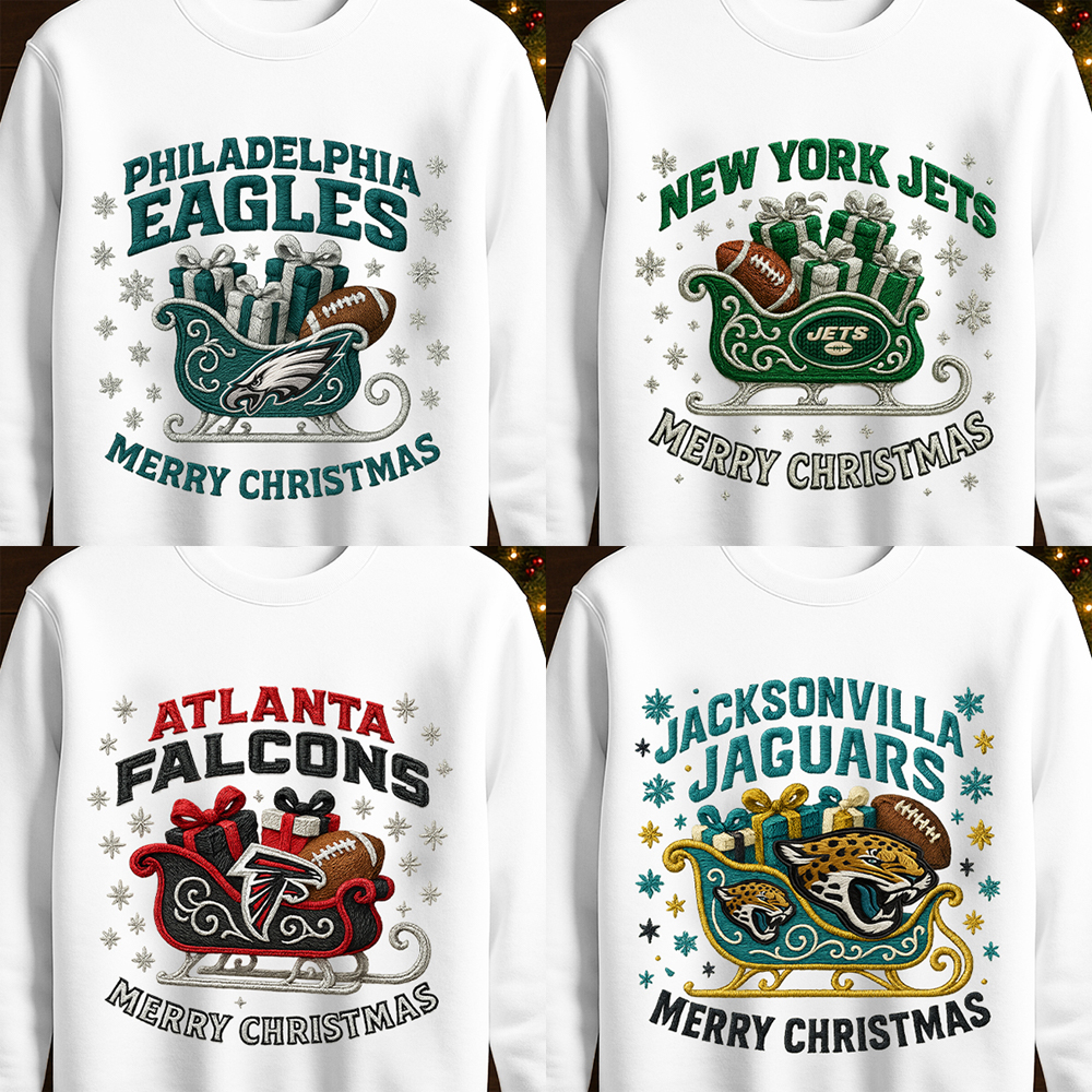 32 Teamsππ NFL Christmas Sleigh Bundle β Holiday Embroidery Edition π§΅β¨+ Mockup
