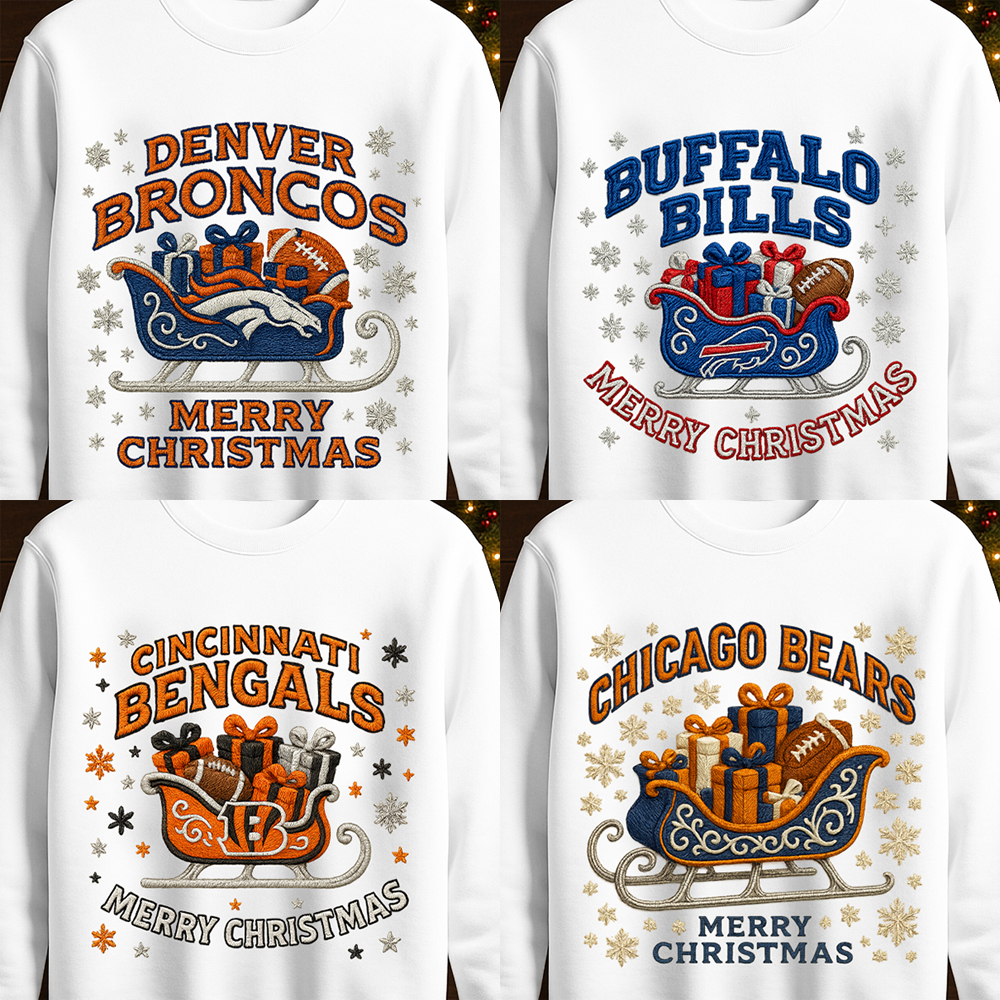 Turn your Christmas into a true sports celebration! This exclusive bundle brings Christmas designs inspired by NFL teams, all created in ultra-realistic 3D embroidery style β perfect for those who love American football + creative crafting.