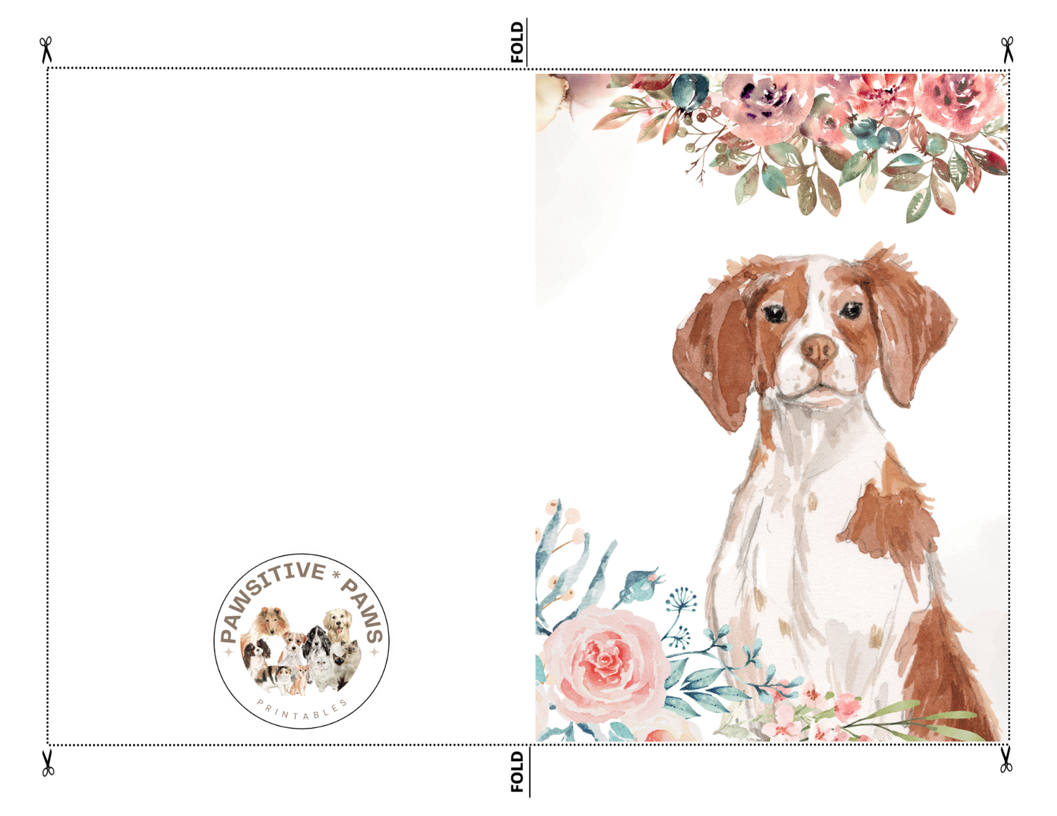 BRITANY SPANIEL Spring Floral Printable Note Card