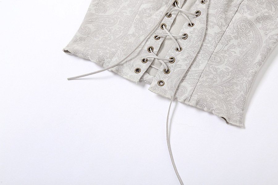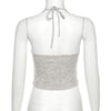 Boho chic style light gray cashew prints halter neck tie strap camisole