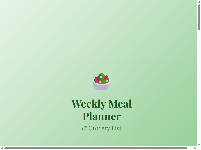 - Organized grocery checklist with 6 categories (Produce, Proteins, Dairy, Pantry, Frozen, Beverages)