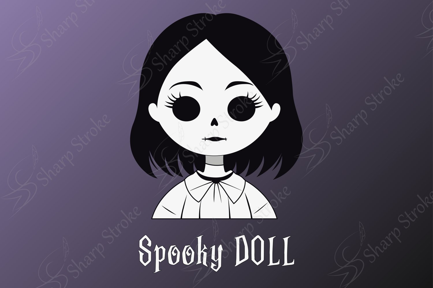 This design features a spooky doll with pale skin, dressed in a haunting uniform, capturing the unsettling vibe.
