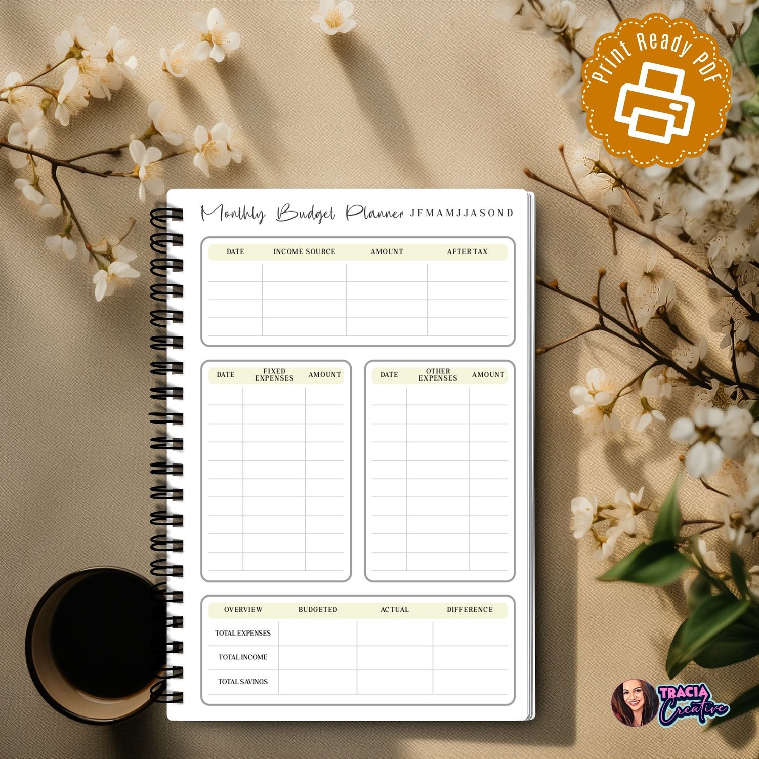 Monthly Budget Planner - Minimalist - Printable Digital Download PDF