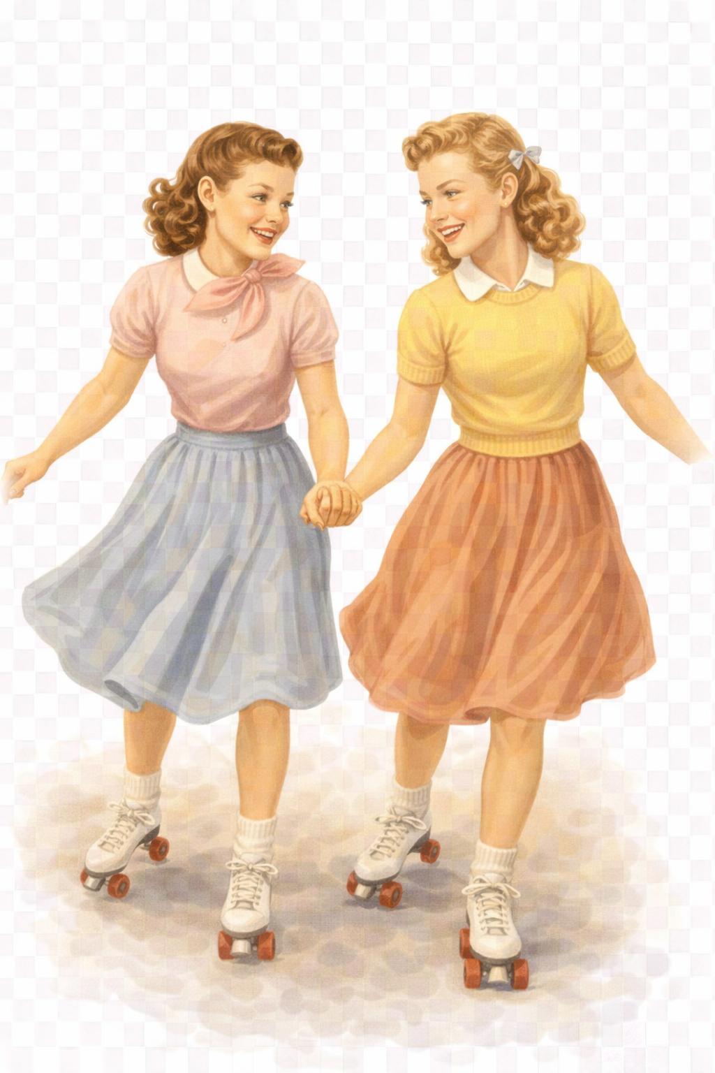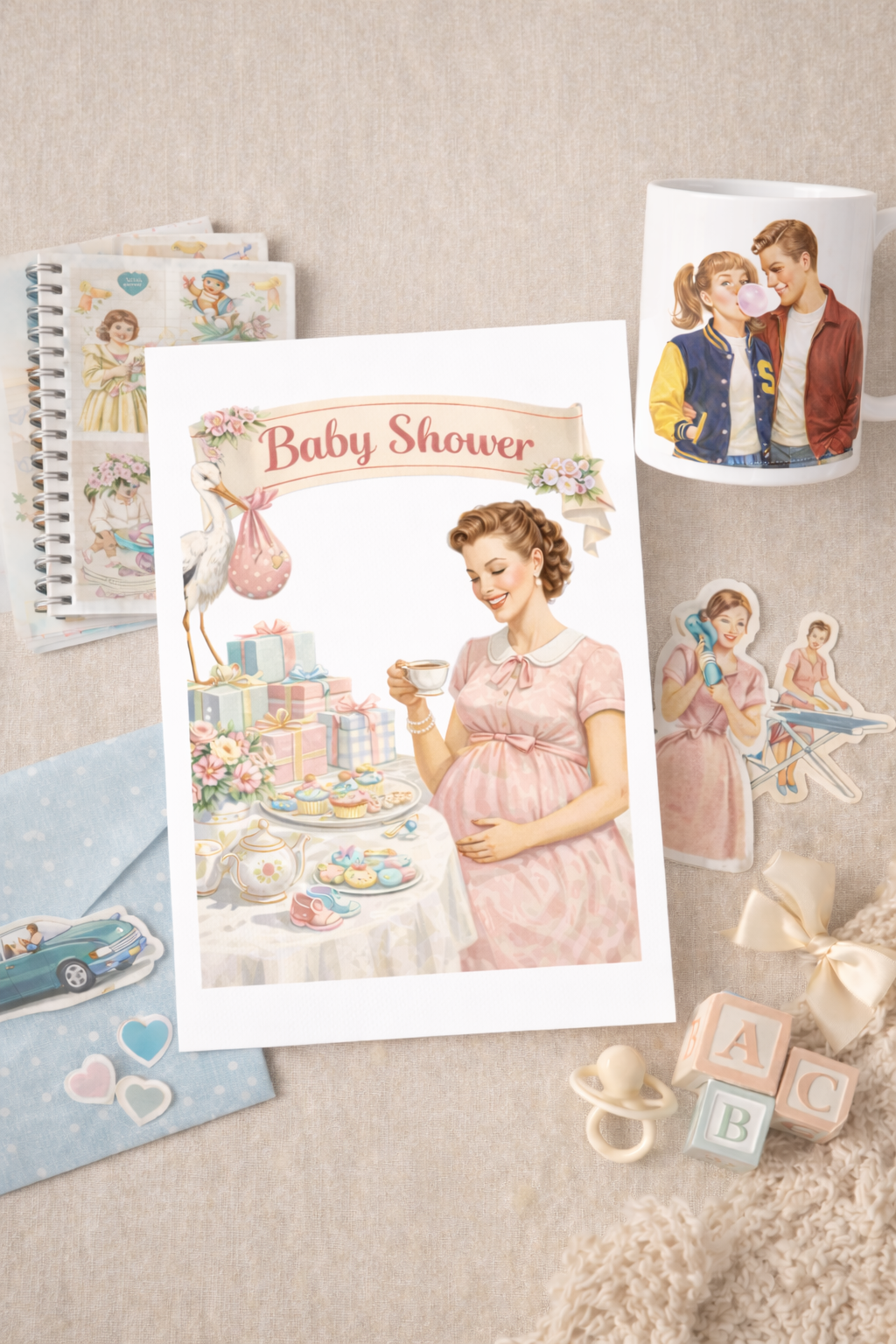 From classic cars and jukebox tunes to homemaking scenes, ironing days, and timeless fashion — this collection brings nostalgic storytelling to life in beautifully detailed vintage-style illustrations.
