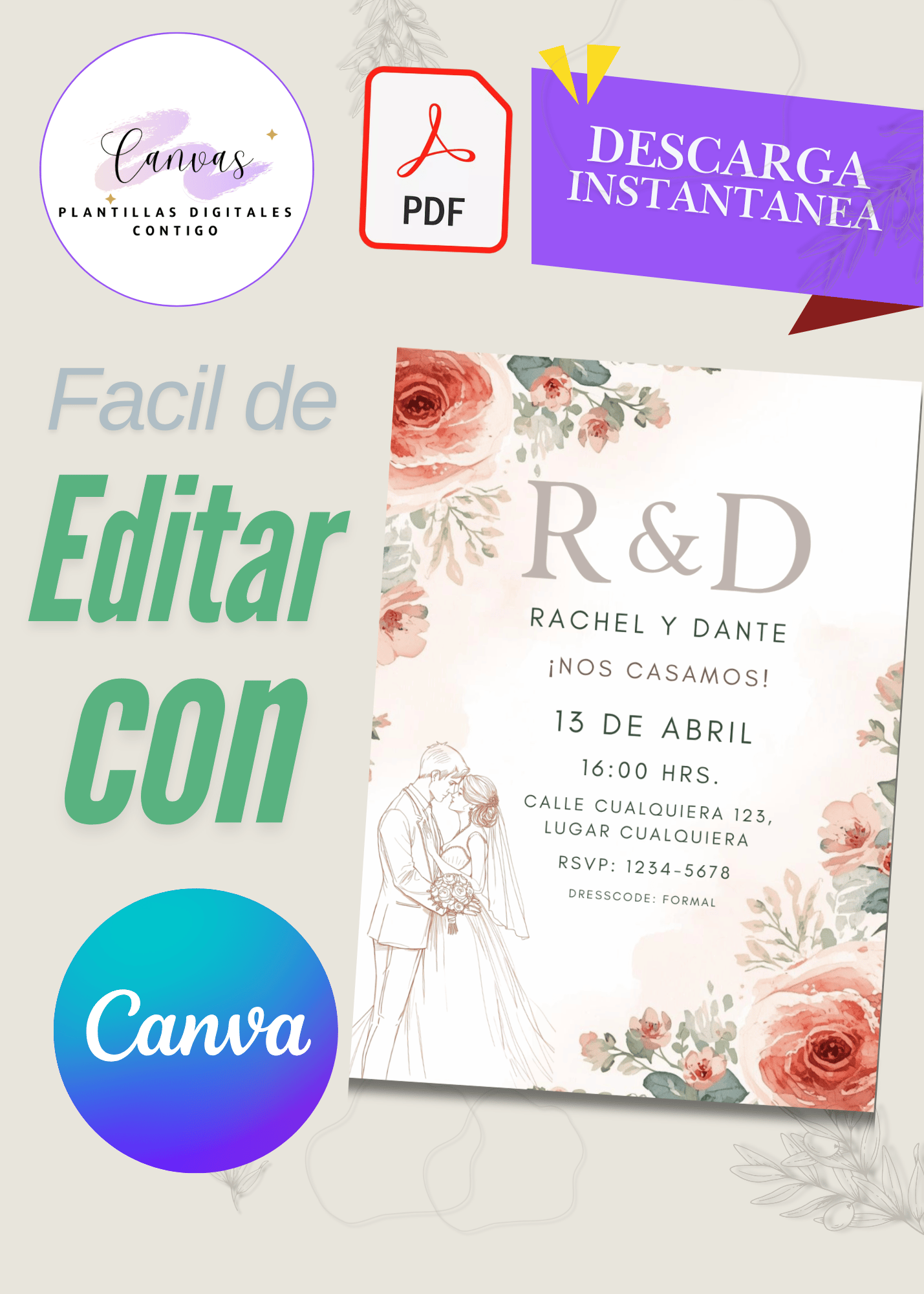 - Editable en Canva: personaliza nombres, fecha, colores y fuentes fácilmente desde cualquier dispositivo.
