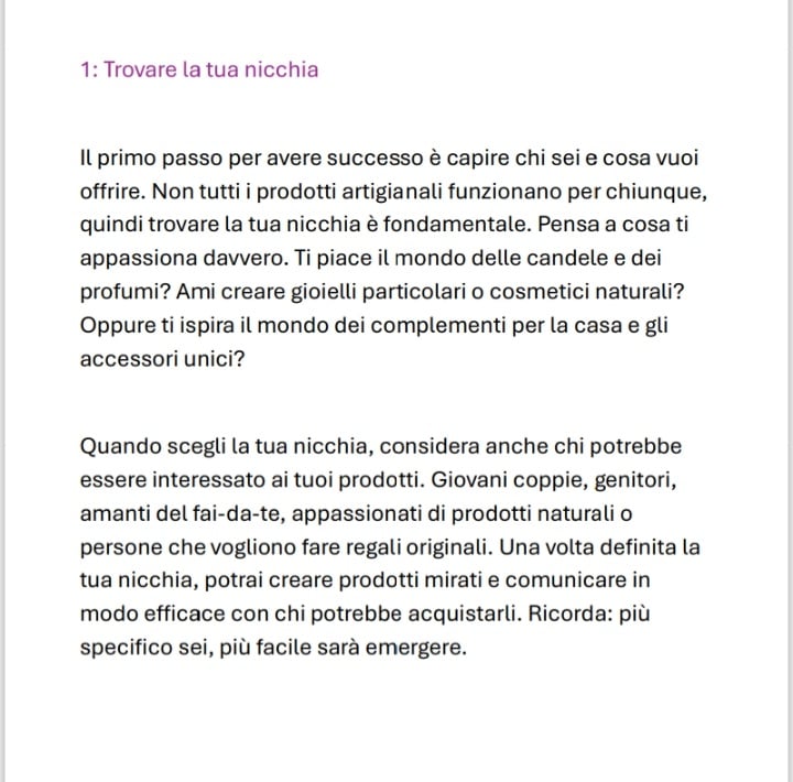 Finalmente una guida chiara. Questa guida mi ha aperto gli occhi,spiega in modo chiaro tutto ciò che serve: dalla partita IVA, ai mercatini fino all'e-commerce.