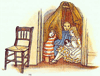 On their way they pass through the mining area where they slip and fall down a steep mud-slide. Polly’s doll’s removable hair got caught on something and ripped off during the fall and is now bald.