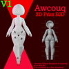 This is my very own doll, Awcouq! I’ve worked to make this doll the best I can and I’m really happy to make it accessible by selling it here as 3D printable STL files. This file also includes the pieces for Arachno, a spider themed doll, as a free addition! (if you choose the Awcouq Pack file variant)
