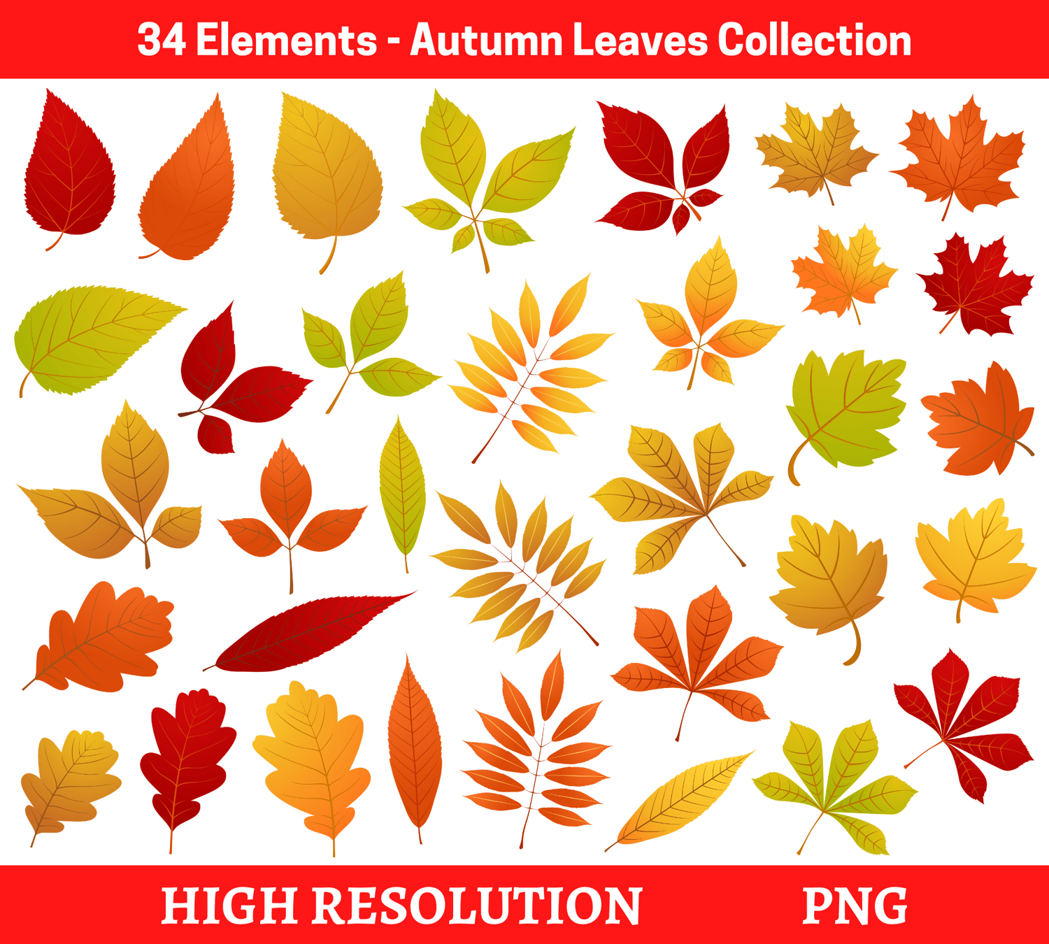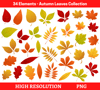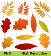 34 Elements - Autumn Leaves Collection, hi-res digital CLIP ART (with transparent background).