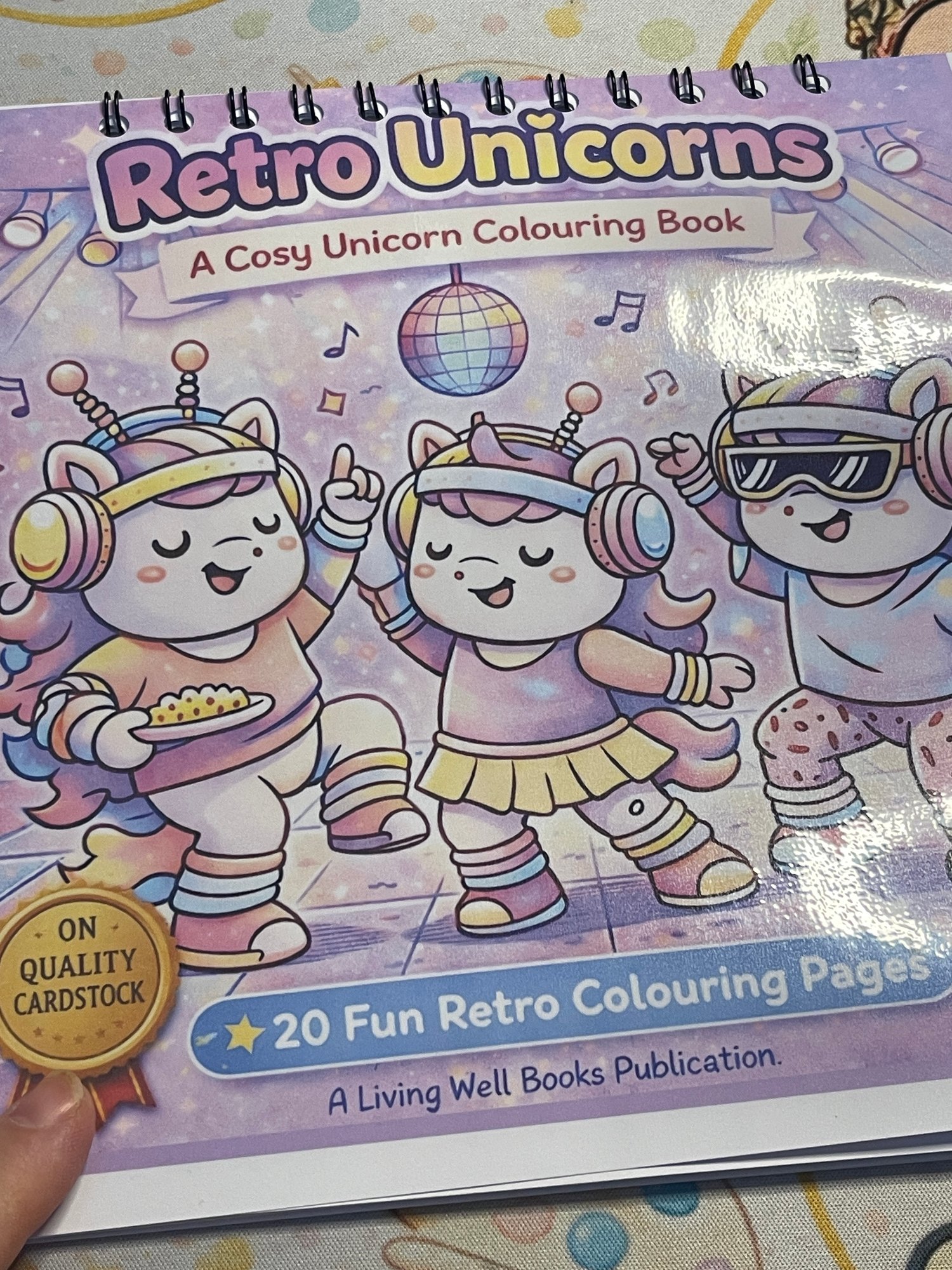 Designed especially for colouring lovers who enjoy calming creativity with a nostalgic twist, Retro Unicorns blends cosy comfort with playful 80s charm. Whether you’re colouring to relax, unwind, or reconnect with your inner retro dreamer, this book is a gentle escape into a softer, sparkly world 🌈💫