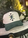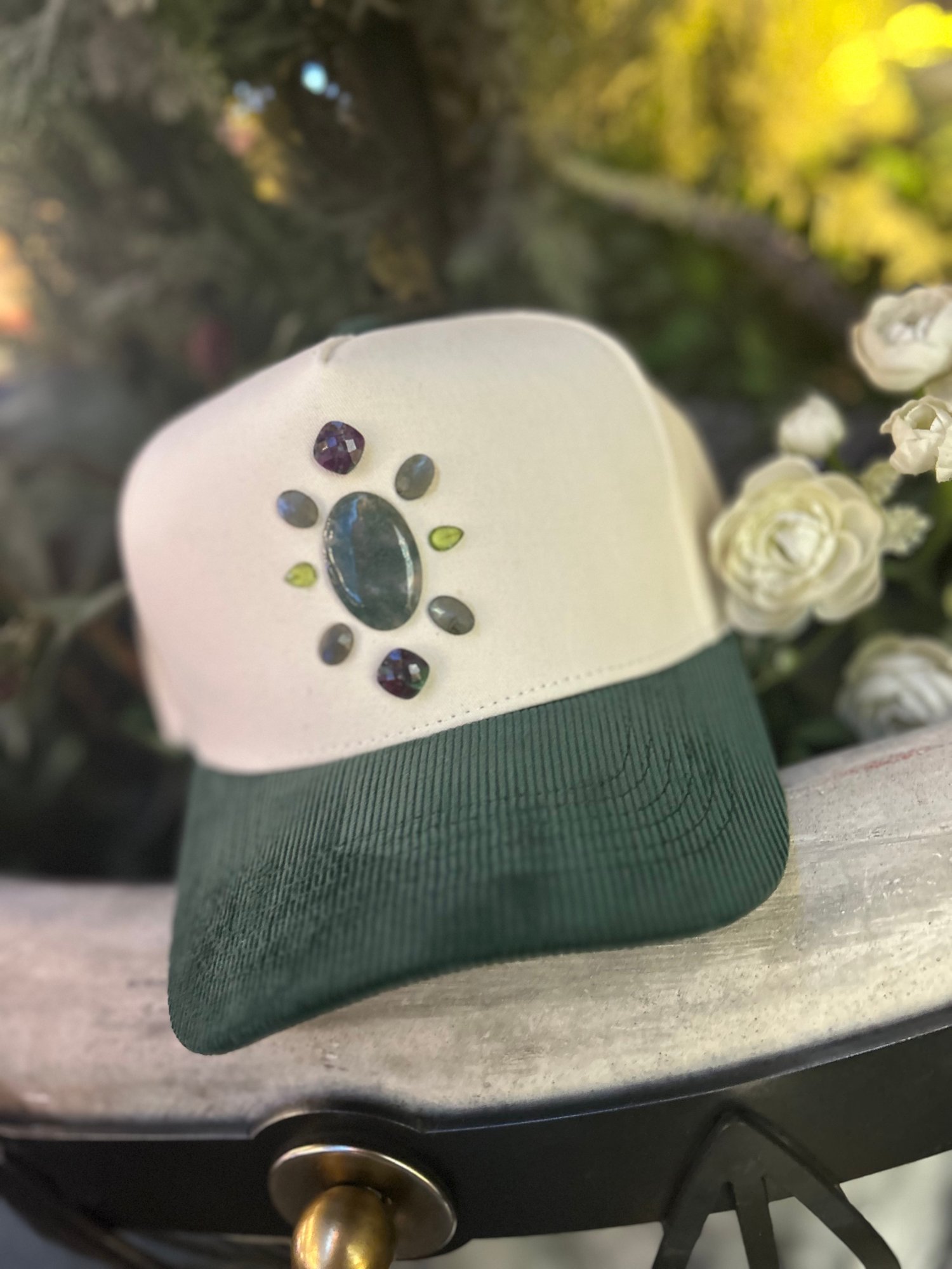The Moss Reflection Crown Protection Hat carries the whisper of the forest, the pulse of the Earth, and the transformative spark of divine light. Adorned with Green Moss Agate, Peridot, Labradorite, and Ruby Zoisite, it balances the grounding energy of earth with the vital fire of the heart. Moss Agate, deeply rooted in the element of earth, is a stone of renewal, growth, and connection to nature. It reawakens the bond between body and planet, grounding spirit into the living green of creation. Peridot, with its bright solar fire, cleanses and revitalizes the heart & solar plexus chakra, infusing the spirit with joy, prosperity, and fresh life-force. Labradorite, aligned with the water, wind & ether, is the guardian of transformation and unseen realms, shielding the aura while igniting the light of the divine within. Ruby Zoisite weaves fire and earth into harmony, awakening courage, passion, and the bold expression of life through the heart. Together these stones form an alchemy of regeneration: moss agate roots the spirit, peridot uplifts vitality, labradorite transforms perception, and ruby zoisite awakens courage. This crown supports the Third Eye, Heart, Root, and Solar Plexus chakras, stabilizing growth, passion, and willpower. Its intention is to be a portal of transformation and renewal, reflecting the eternal cycle of life, abundance and rebirth in the living green mirror of the Earth.