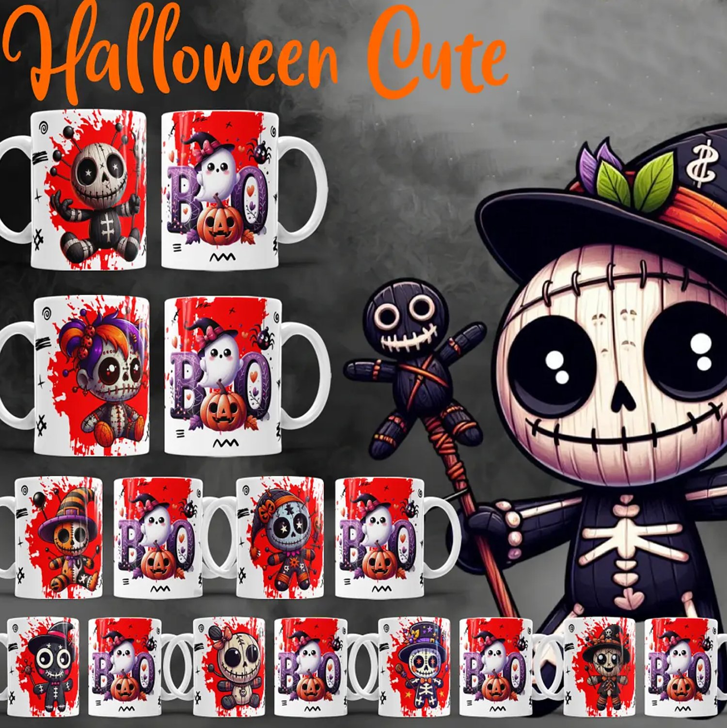 22 Artes para Caneca Halloween Cute Arquivo Editável