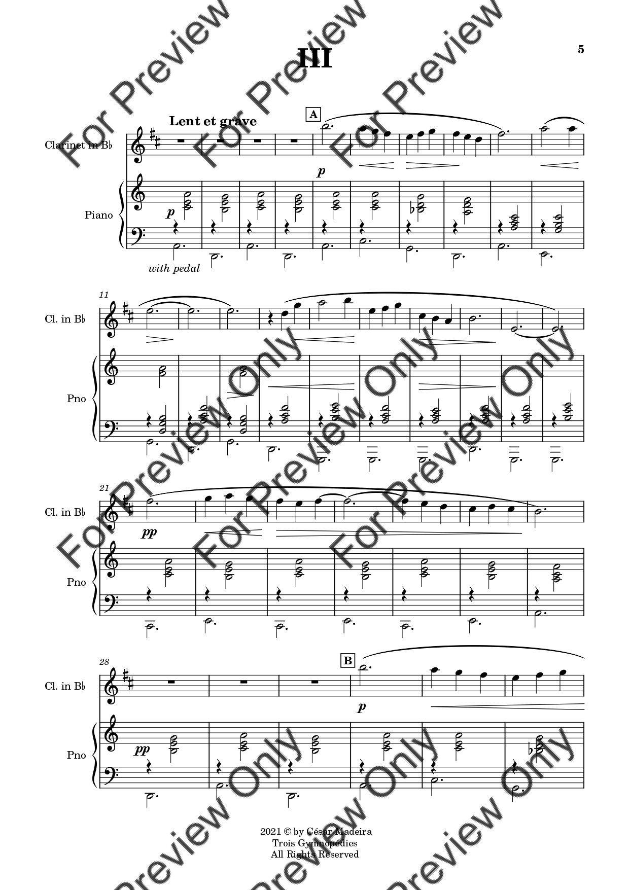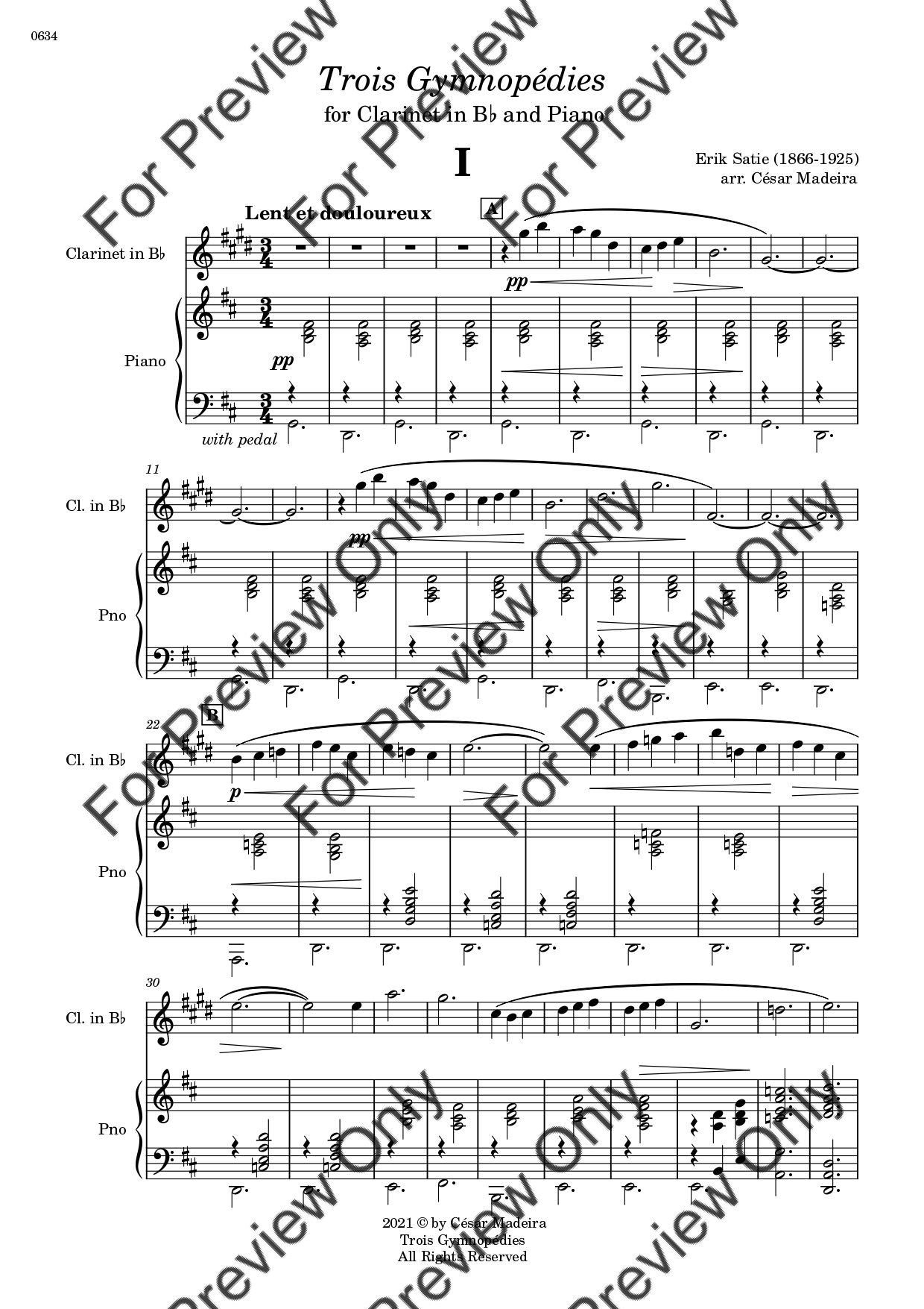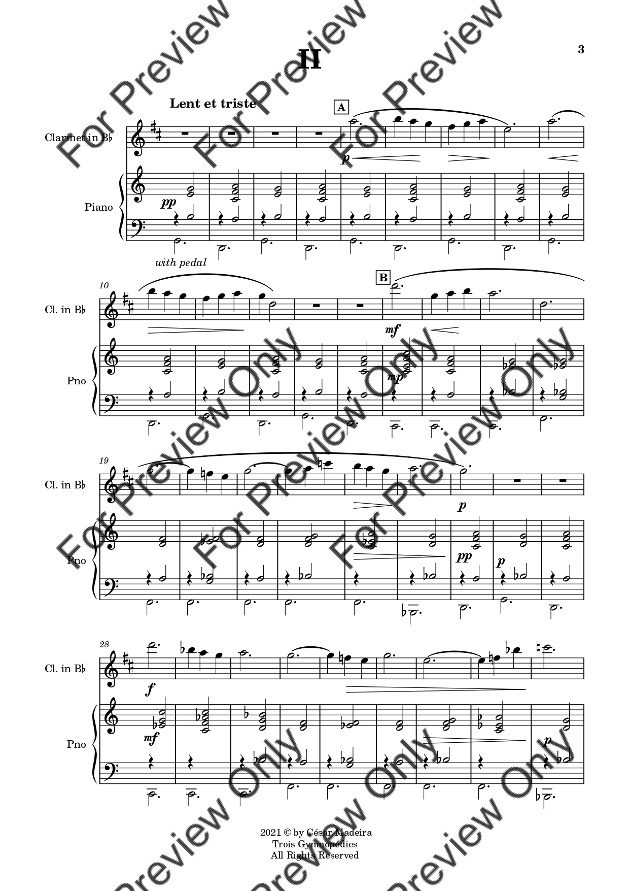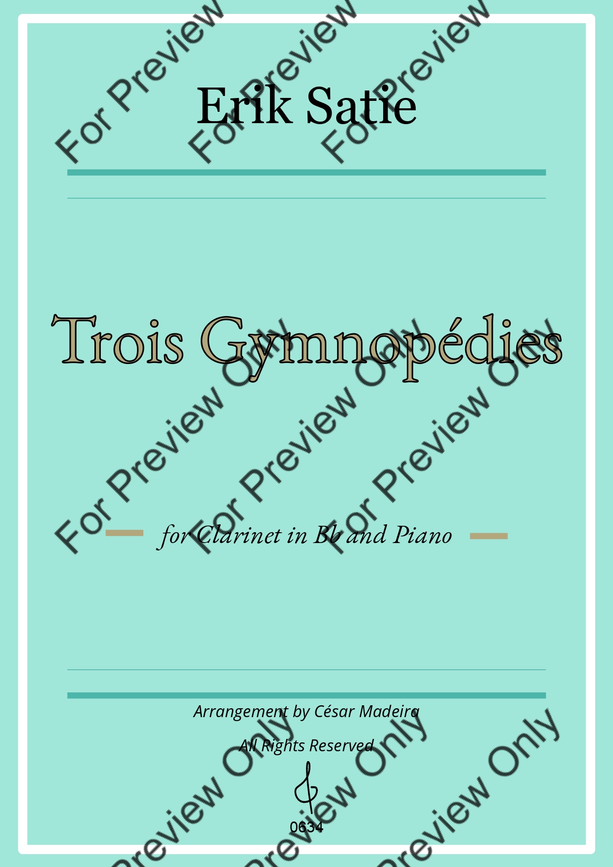 Three Gymnopédies by Eric Satie. Arrangement for Bb Clarinet and Piano. With Full Score and Individual Parts. Have fun!