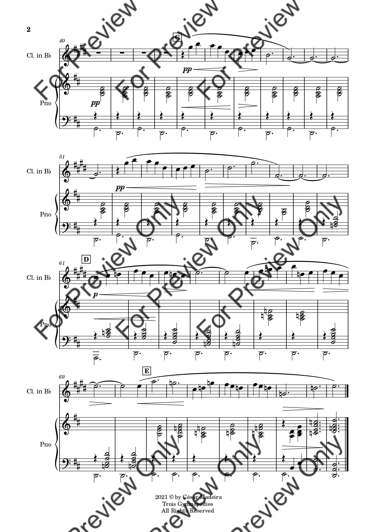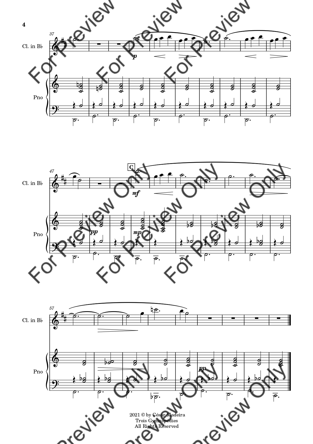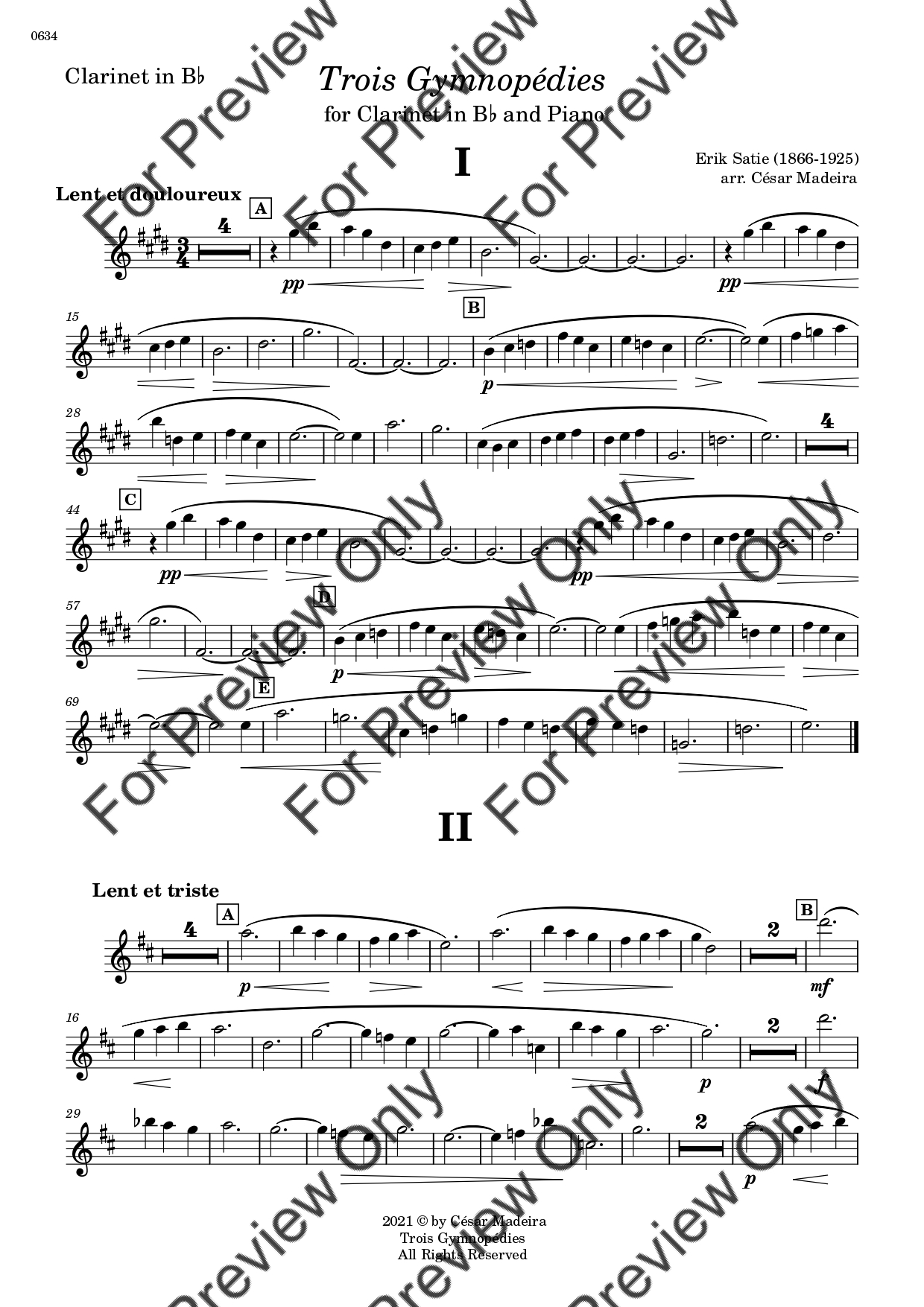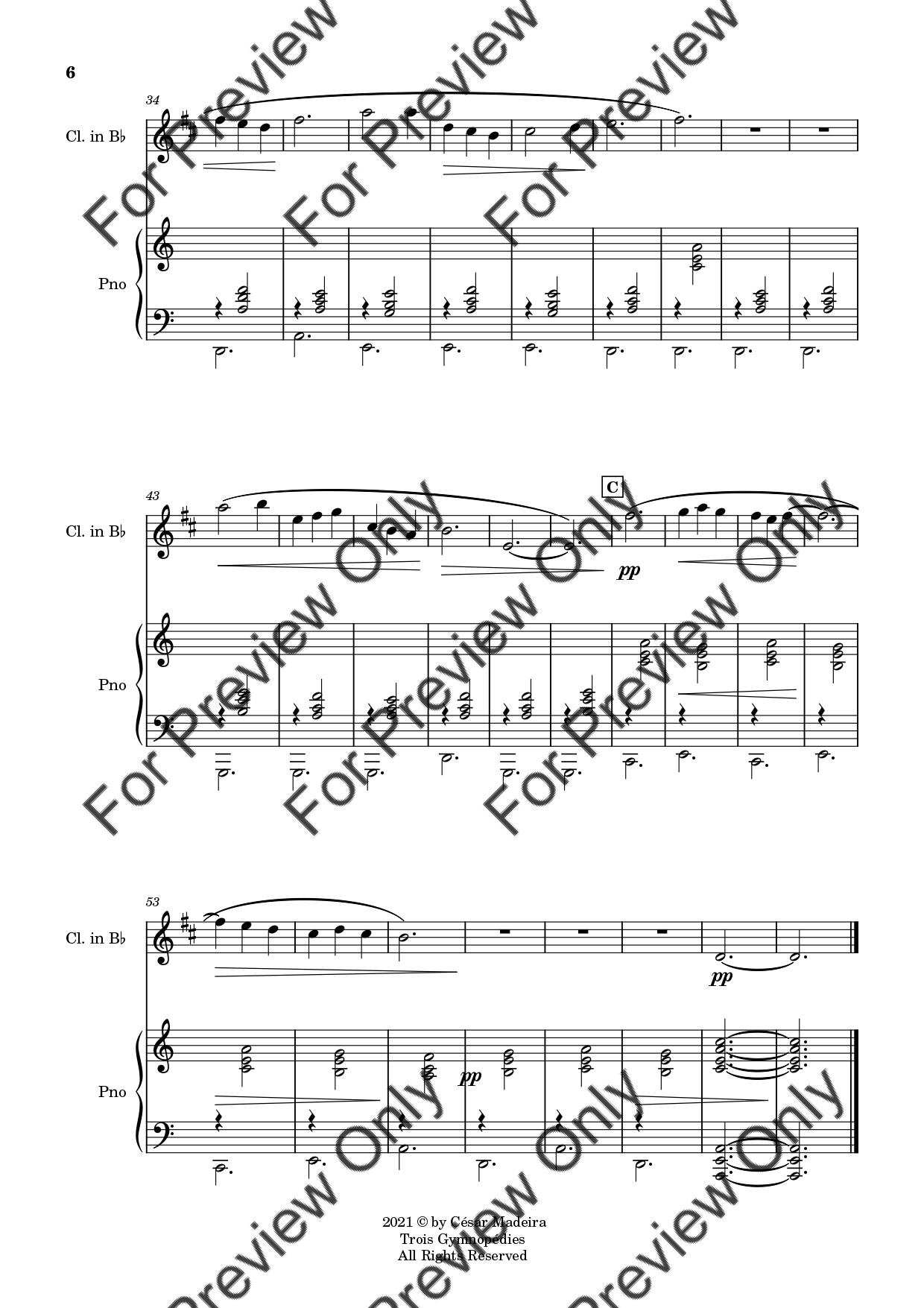Three Gymnopédies by Eric Satie. Arrangement for Bb Clarinet and Piano. With Full Score and Individual Parts. Have fun!