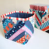 You will receive, 9 pages of step-by-step instructions with helpful tips and photos. I’ve provided the measurements you need to make a plain tub if patchwork is not your thing! In the last section I give you some ideas for customising your boxes, including how to make and attach handles. This is a cut and measure pattern so NO templates are provided.