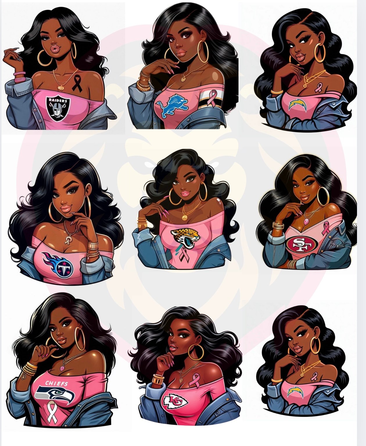 Breast cancer awareness we support our cancer victims Score big with this all-in-one NFL Girl Bundle featuring all 32 NFL teams! Perfect for game day designs, custom fan gear, and football-themed merchandise. This bundle includes ready-to-use, high-resolution JPEG files β no design skills needed!